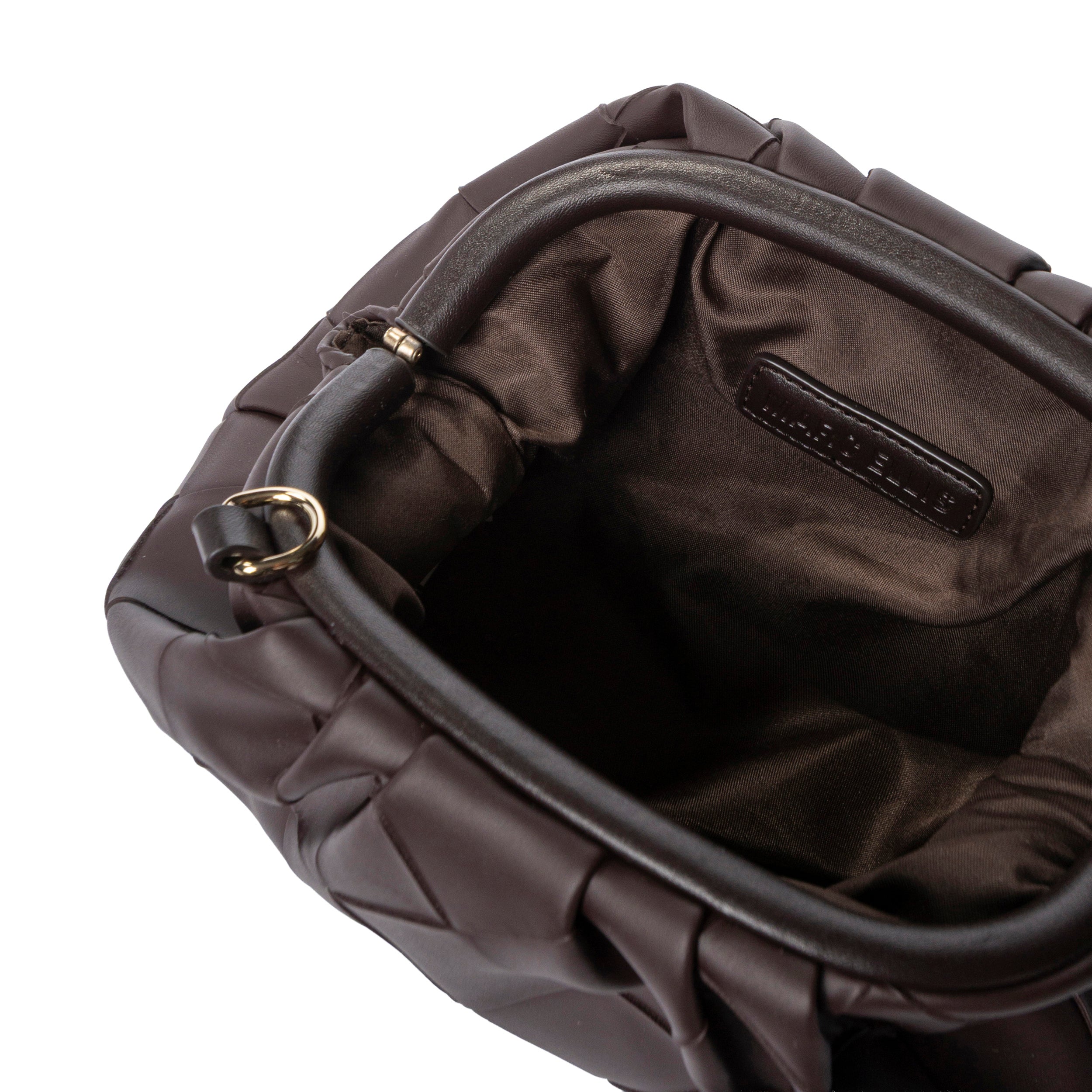 MARC ELLIS Pochette Hip Bag da donna marrone, realizzata in maxi ecopelle effetto intrecciato con motivo geometrico. La sua morbida forma a pochette dona un tocco sofisticato, perfetto per look eleganti e versatili. La borsa presenta una chiusura superiore a scatto con struttura rigida, un interno foderato con logo e un ampio scomparto per gli oggetti essenziali. La parte frontale è decorata con il logo Marc Ellis New York in metallo color oro. La borsa è inoltre dotata di una tracolla removibile, che ne consente l'uso a tracolla o a tracolla, garantendo praticità senza rinunciare allo stile. Dimensioni: 25cm x 4cm x 19cm. Stagione autunno/inverno.