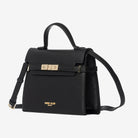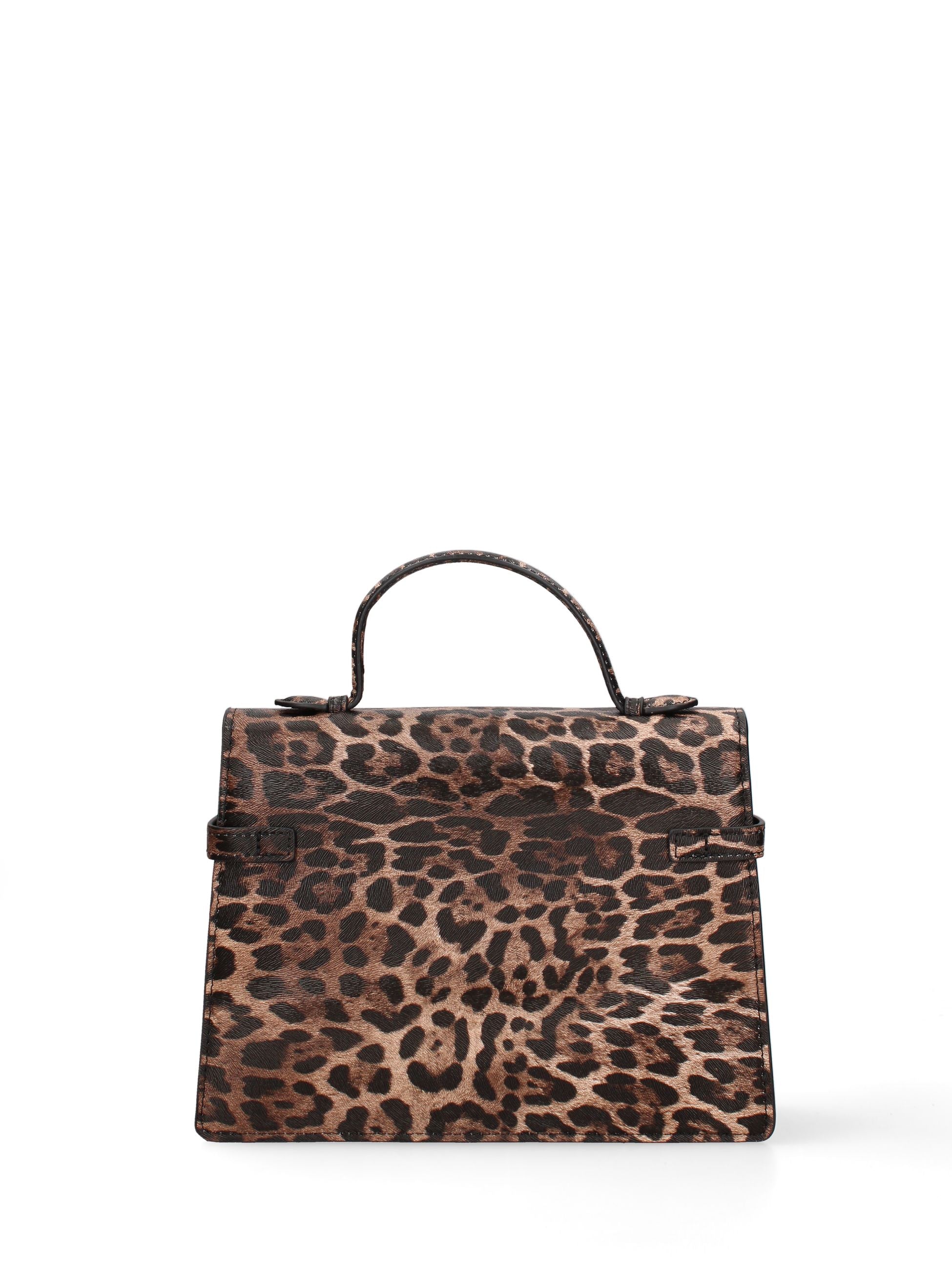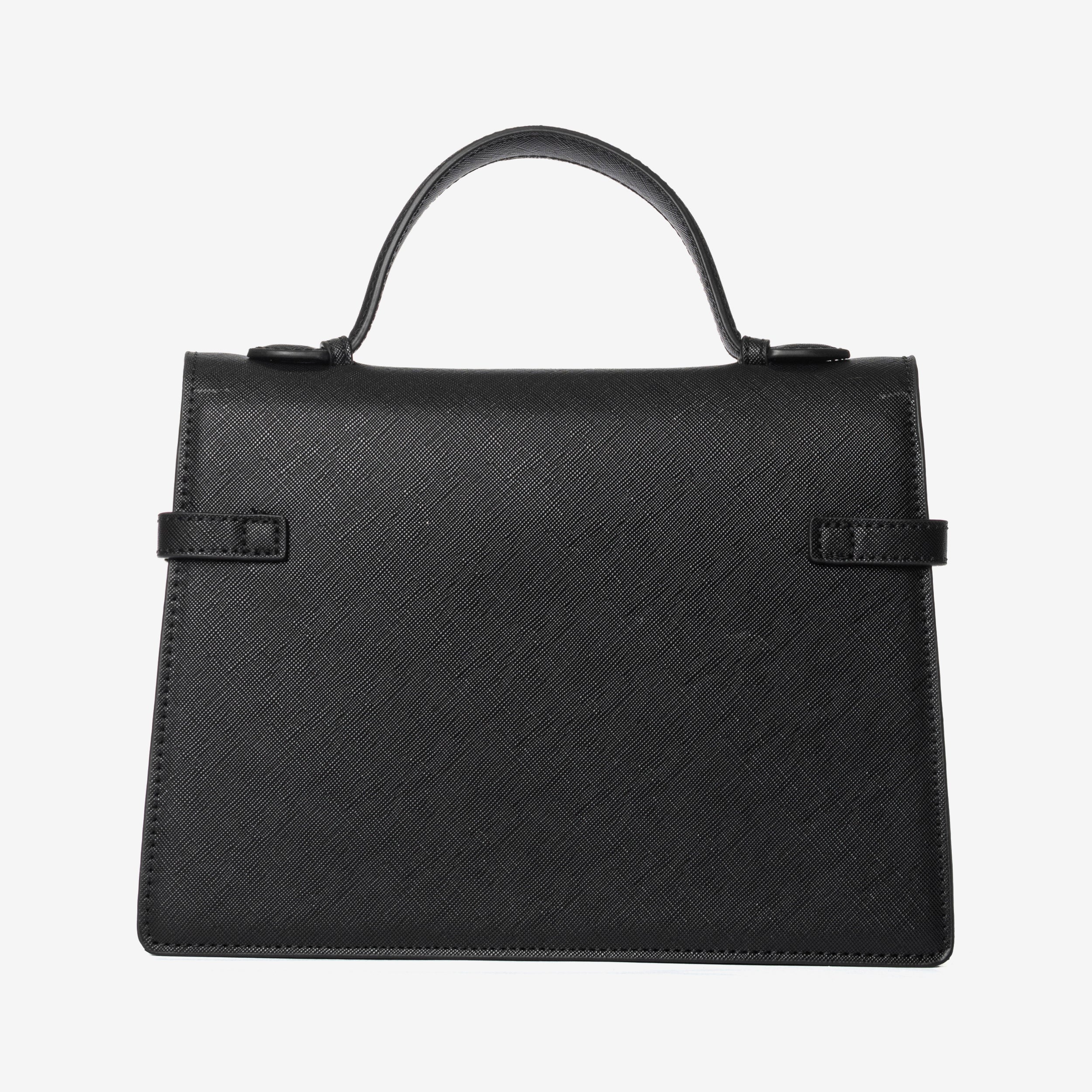 Borsa in ecopelle con manico, chiusura con clip e magnetica. Tasca interna con zip. Tracolla in ecopelle.