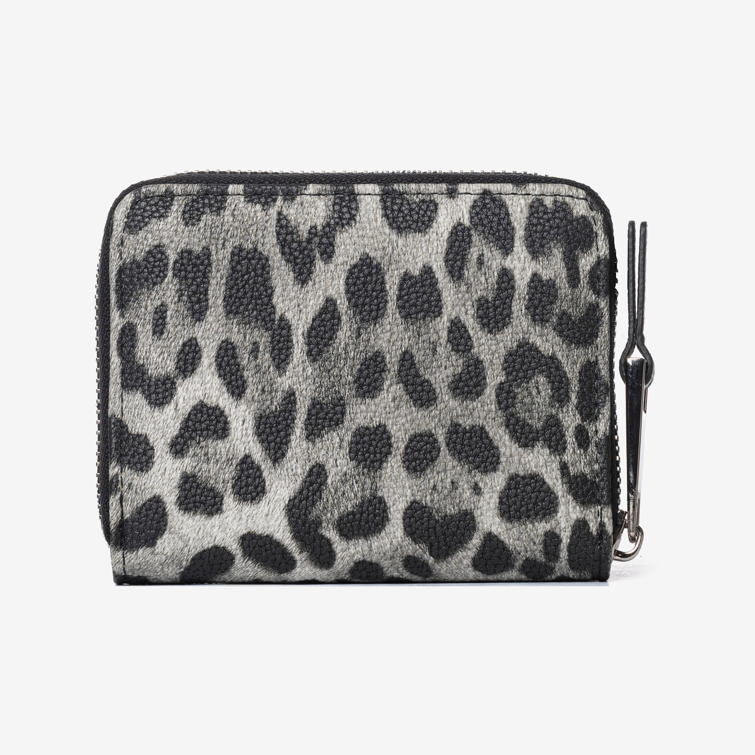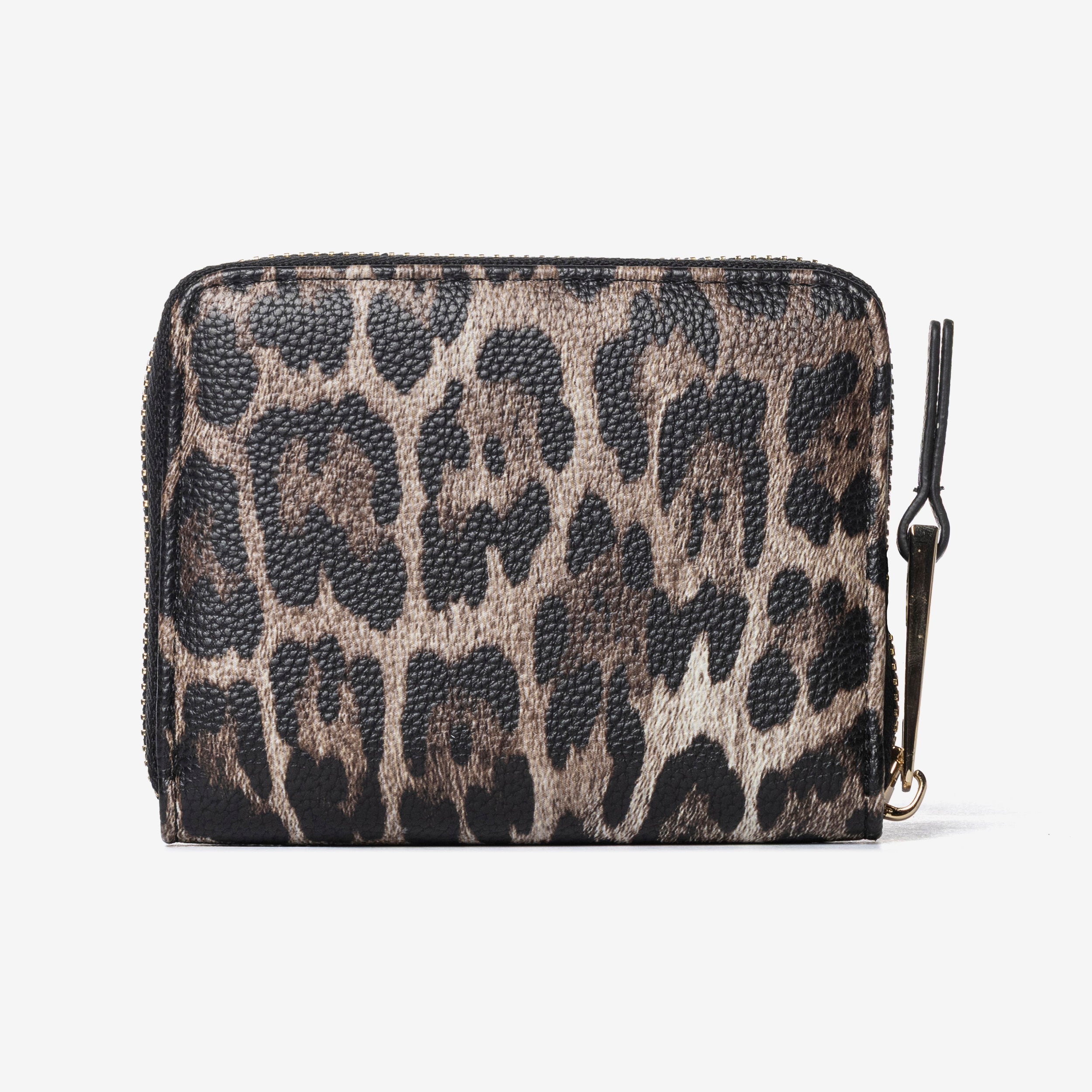 Design e Materiali: Si tratta di un portafoglio compatto con una fantasia animalier (leopardata). È realizzato in ecopelle con una finitura "zip around" (chiusura a cerniera su tre lati) e un tiretto lungo per una facile apertura.