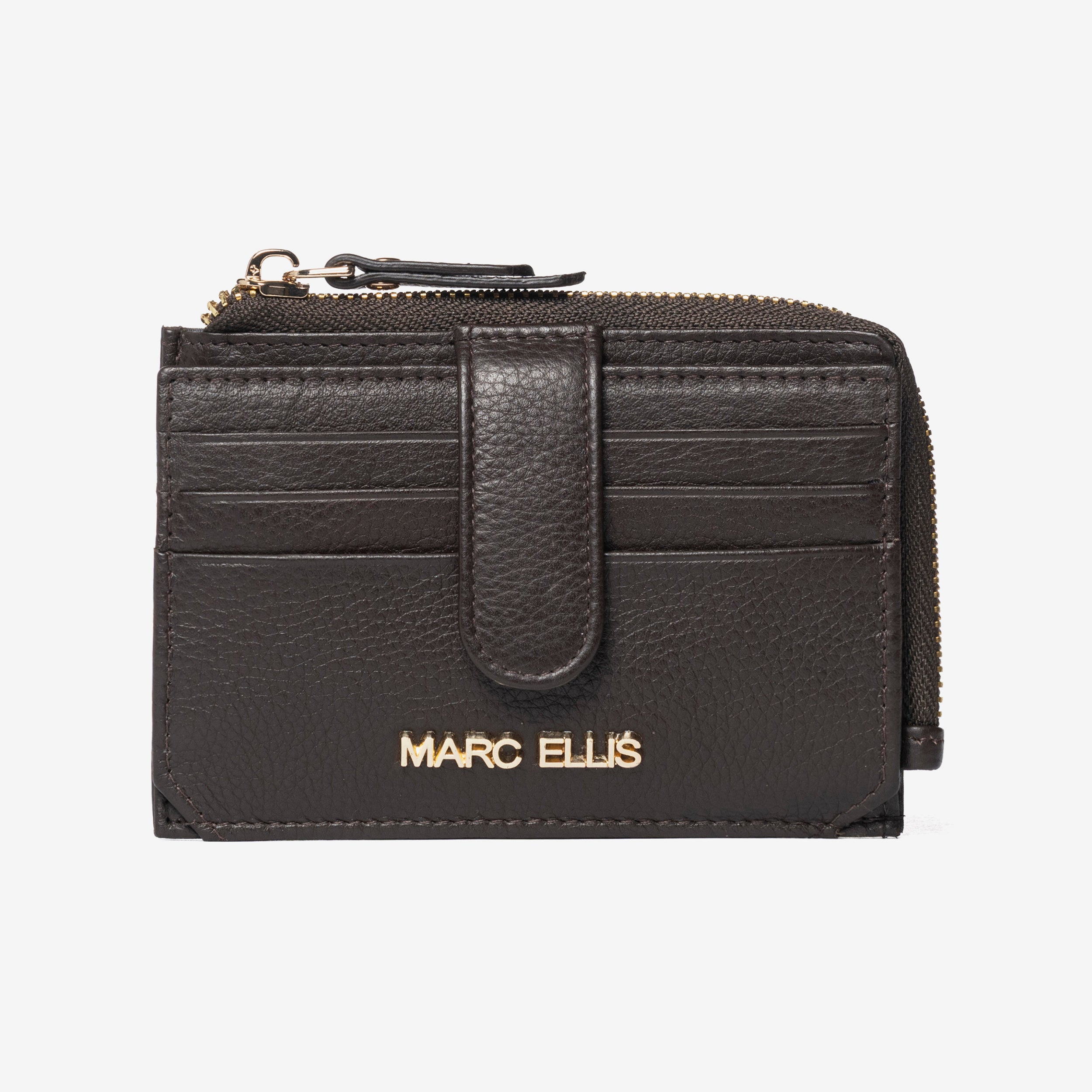 Porta carte Marc Ellis in pelle con doppio scomparto: uno con zip perfetto per inserire le monete e l'altro con apertura a bottoncino con vani porta carte .