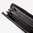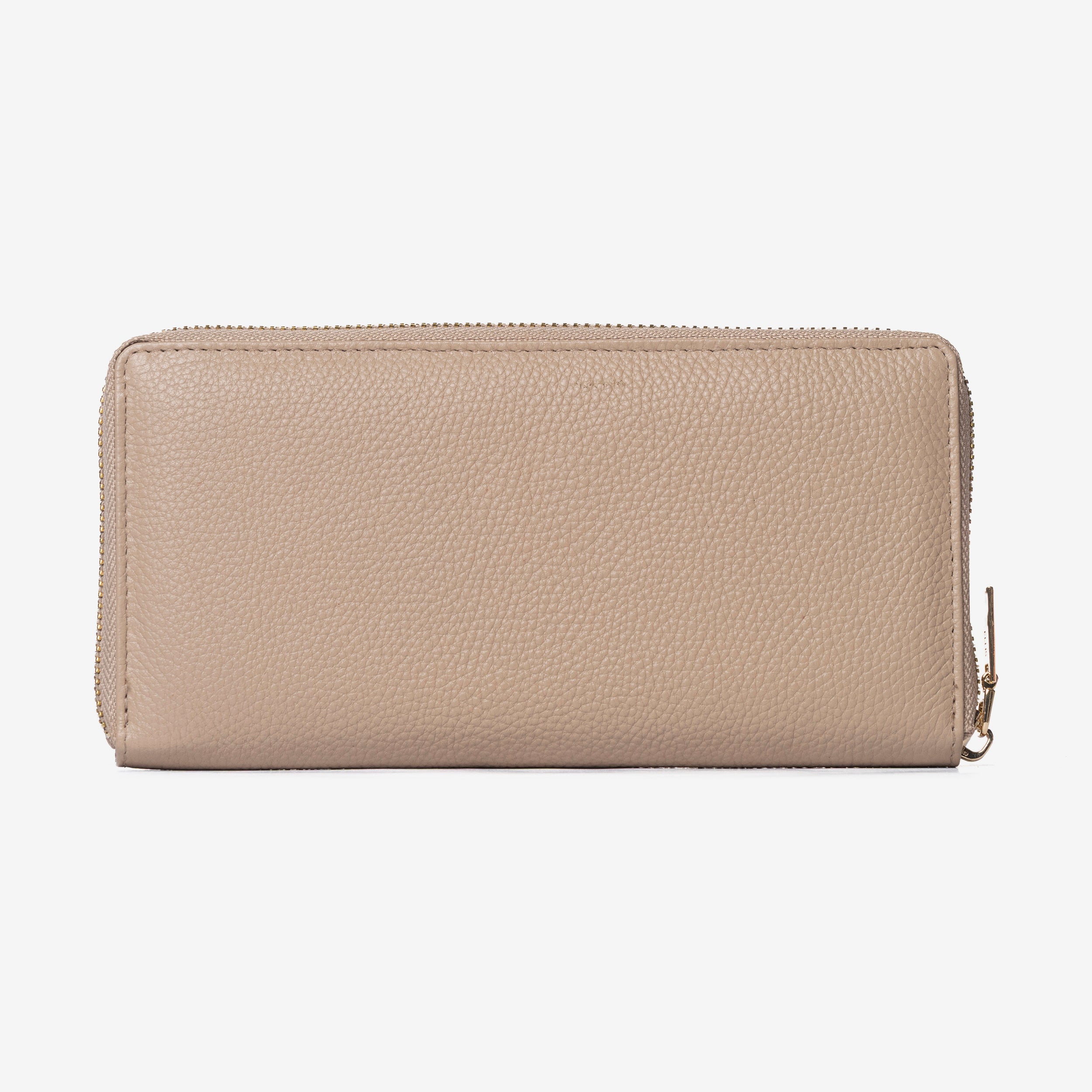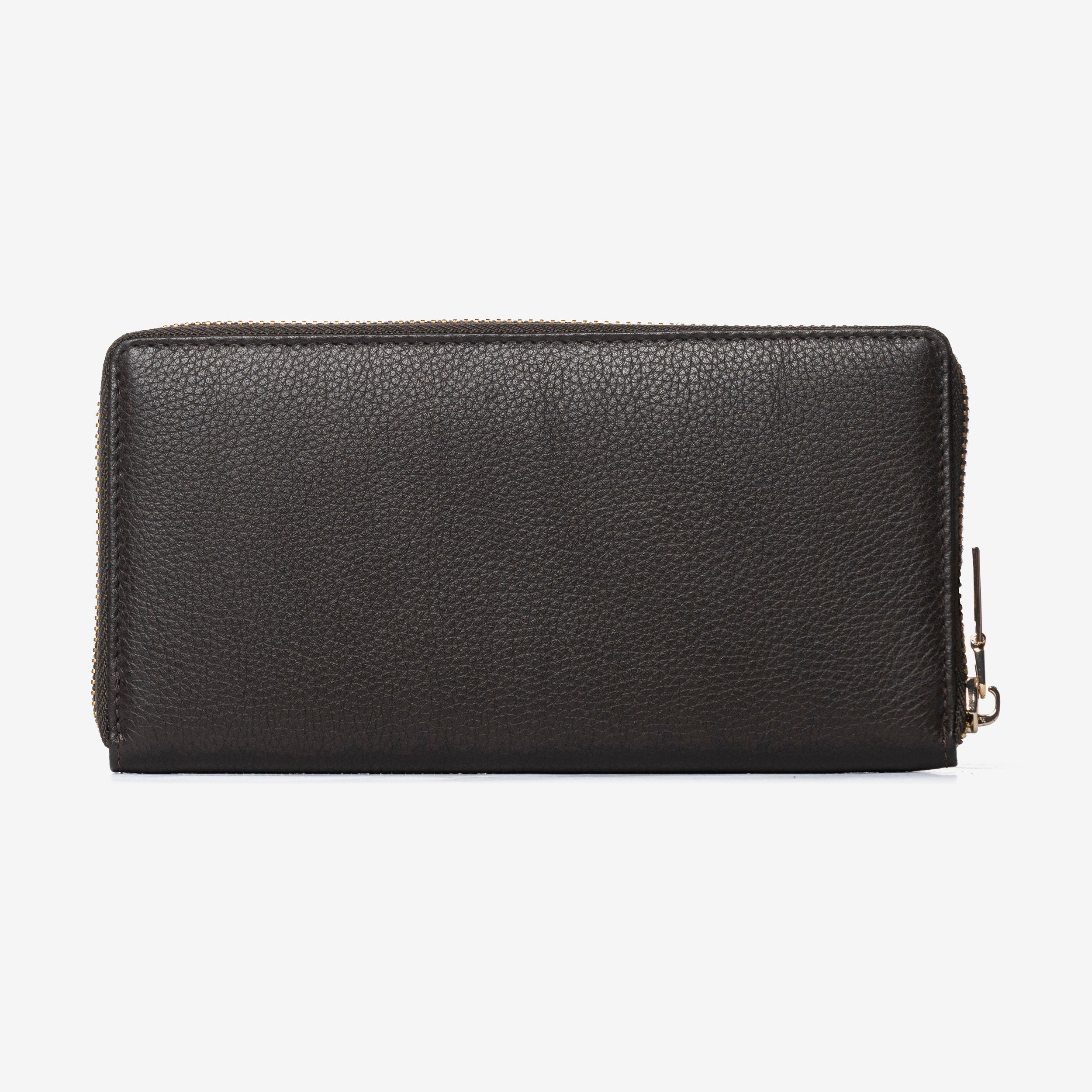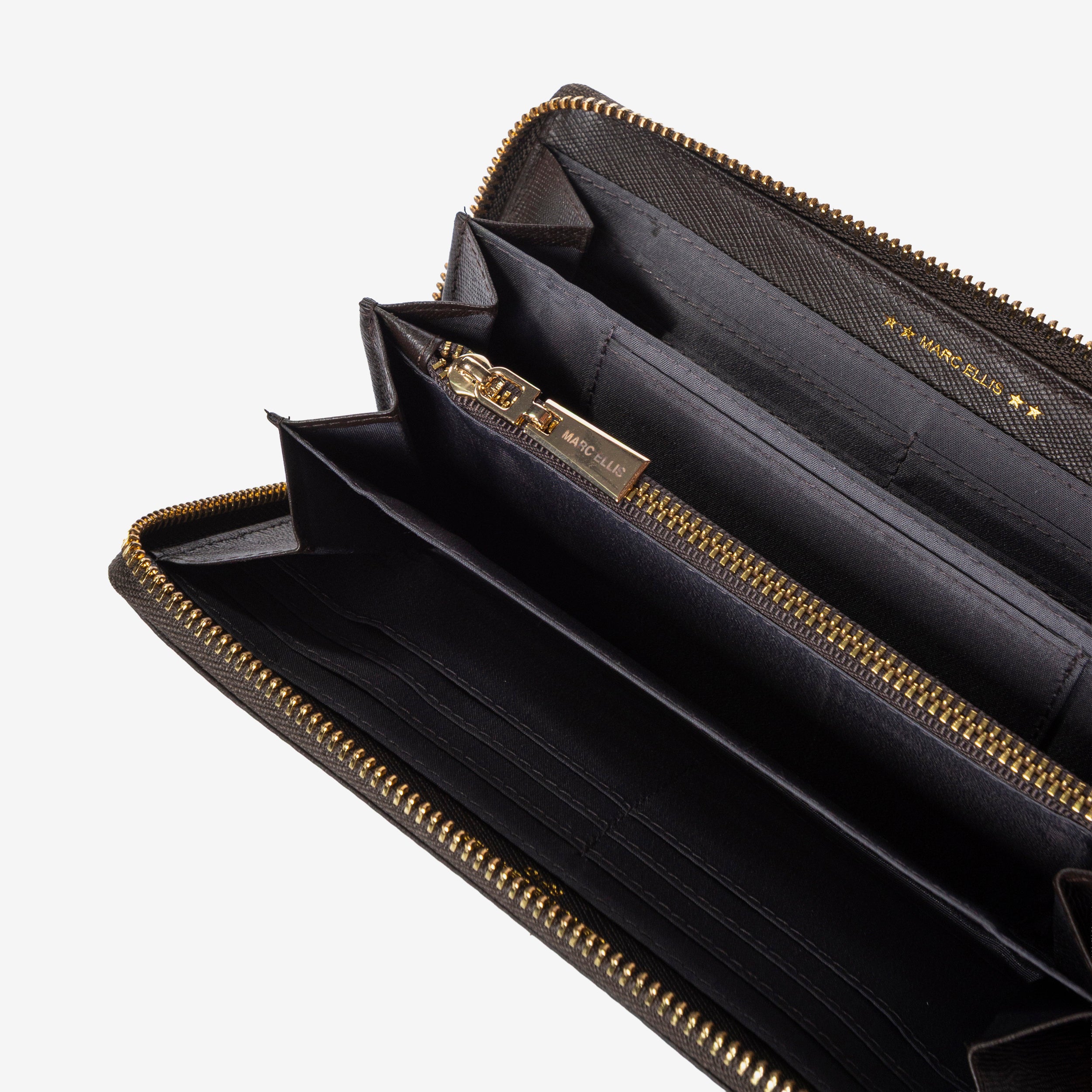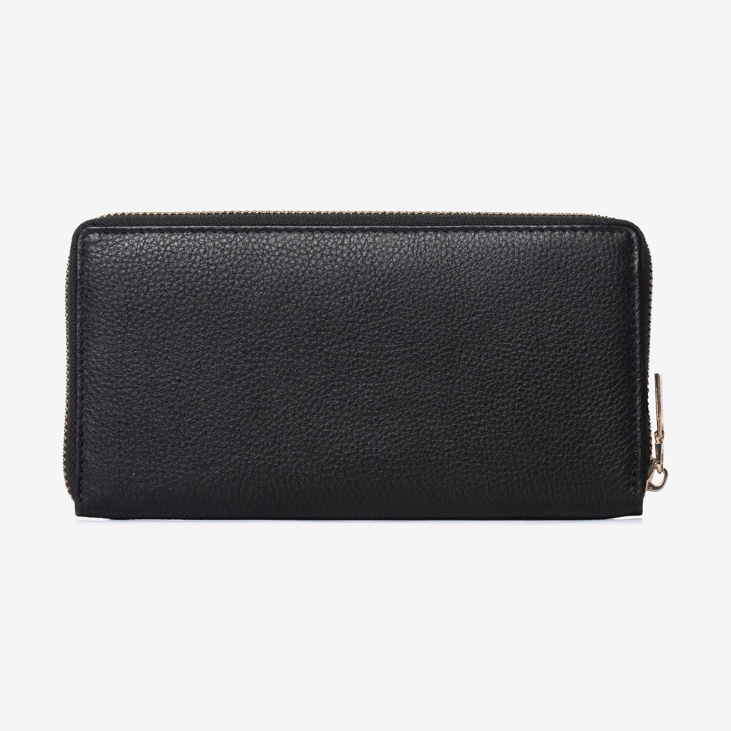 Lettering in metallo, chiusura con zip taschini per carte. Scomparti per banconote e taschino con chiusura a zip per le monete.