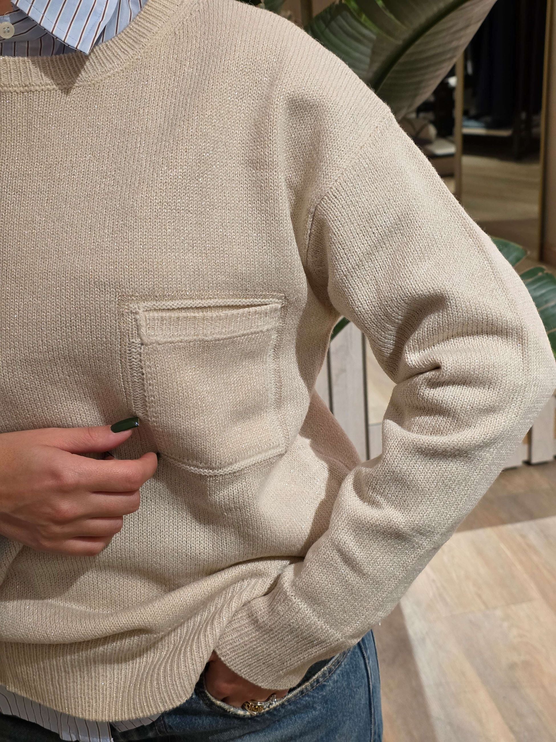 Maglia donna modello girocollo e maniche lunghe tessuto con filamenti di lurex polsi e fondo maglia a costine