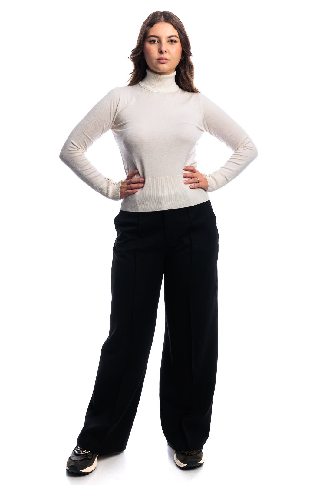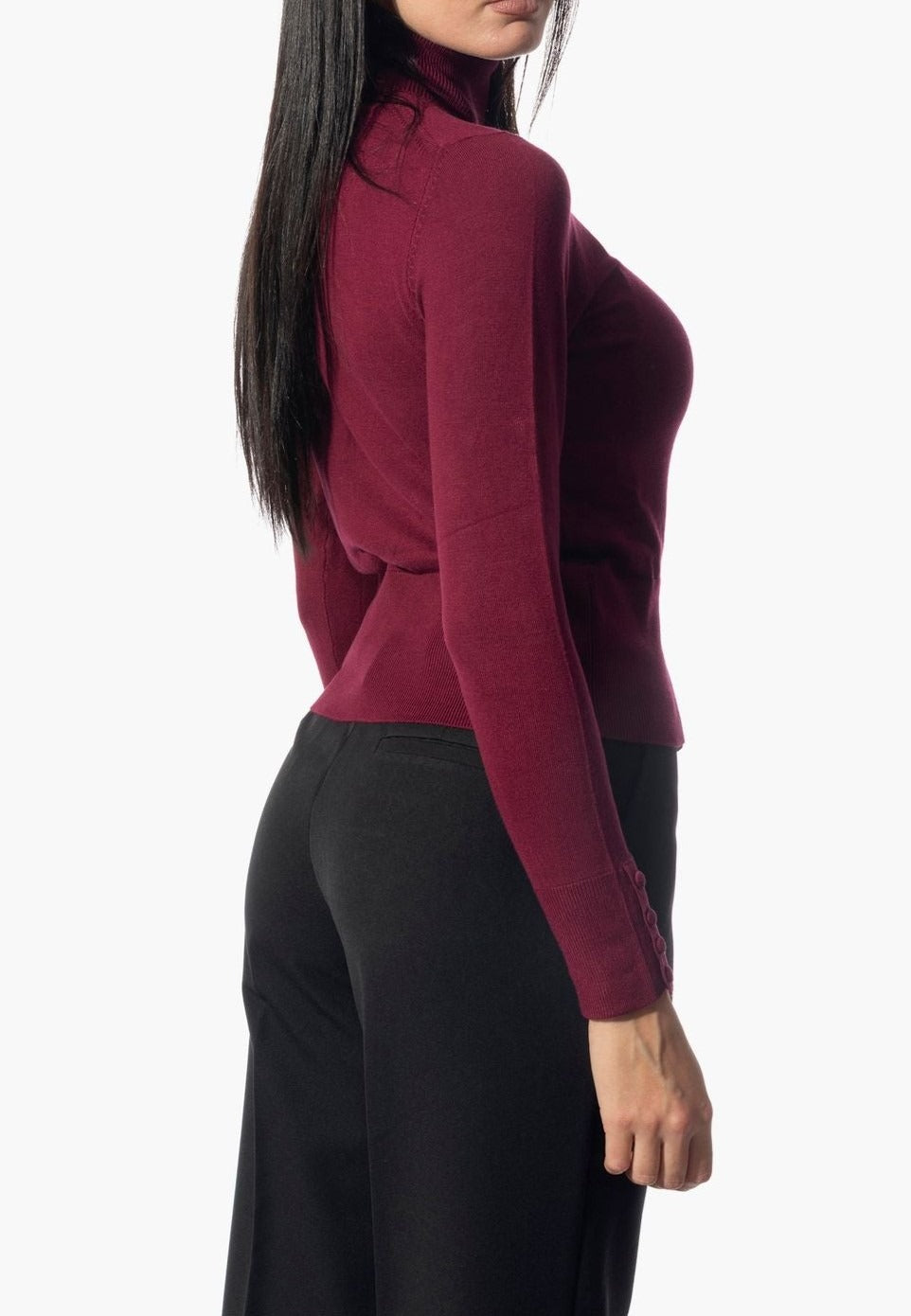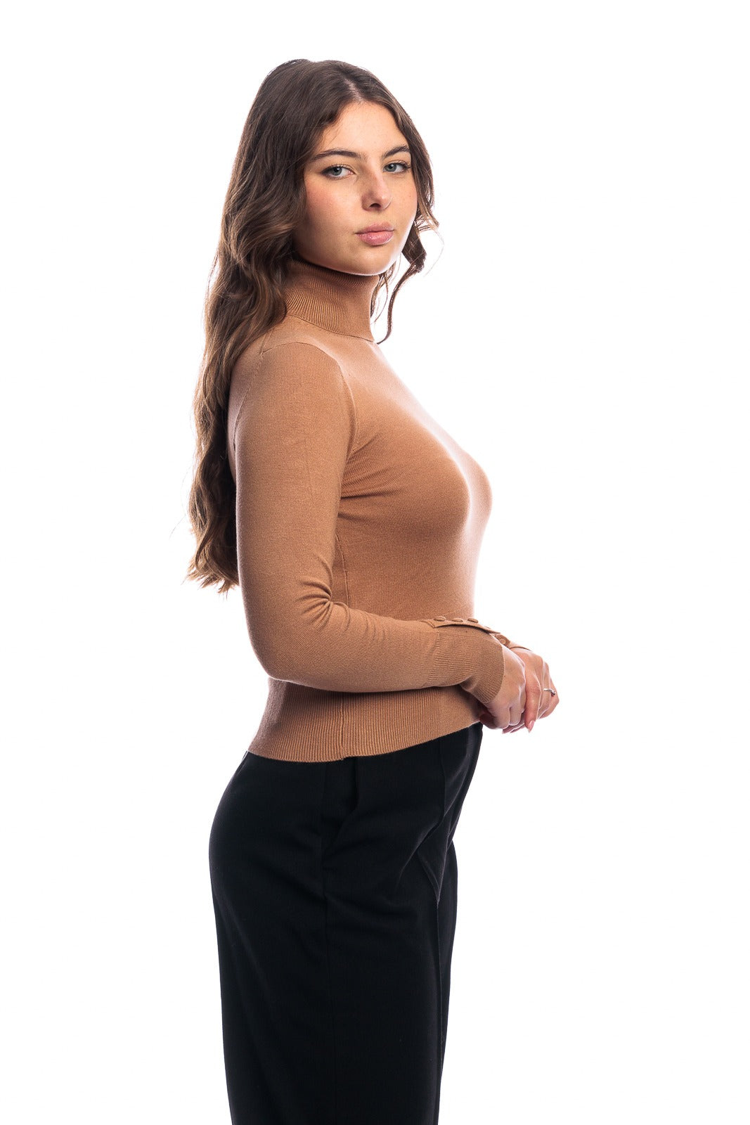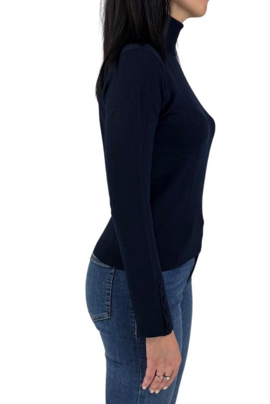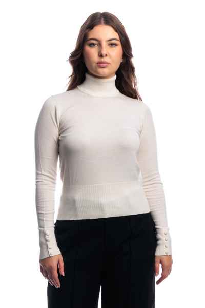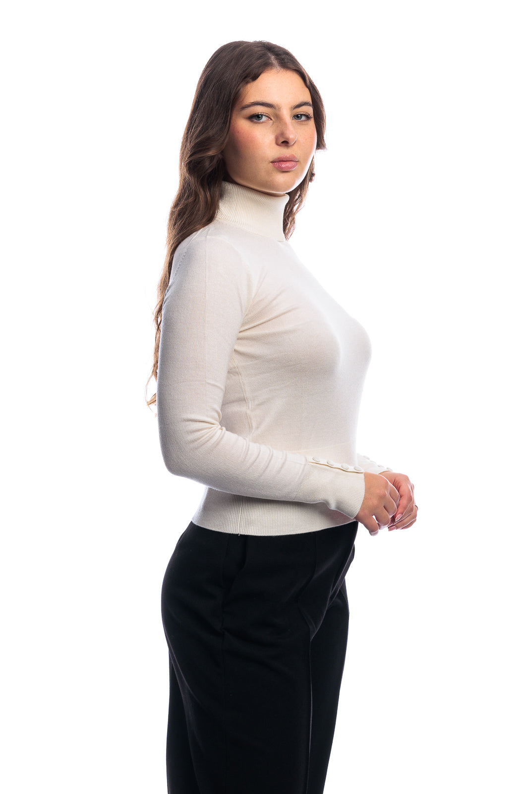 Maglia donna dolcevita in misto viscosa con bottoni ai polsi e ciondolo logato sul retro
