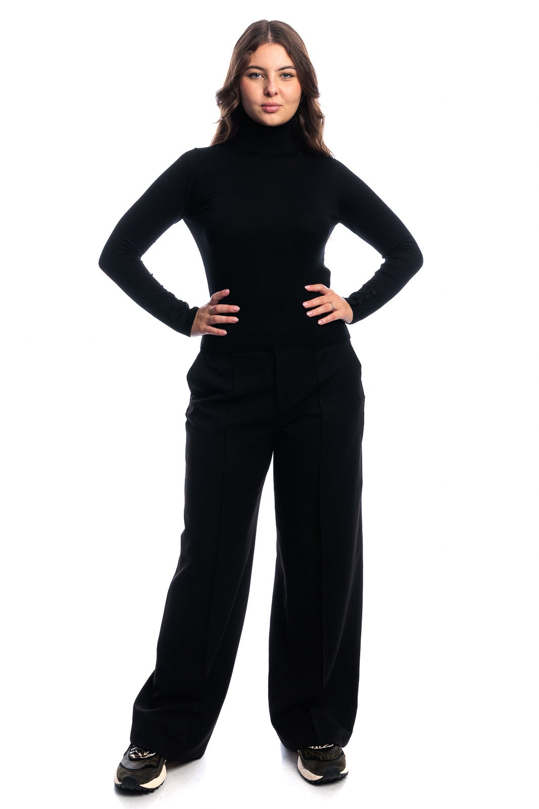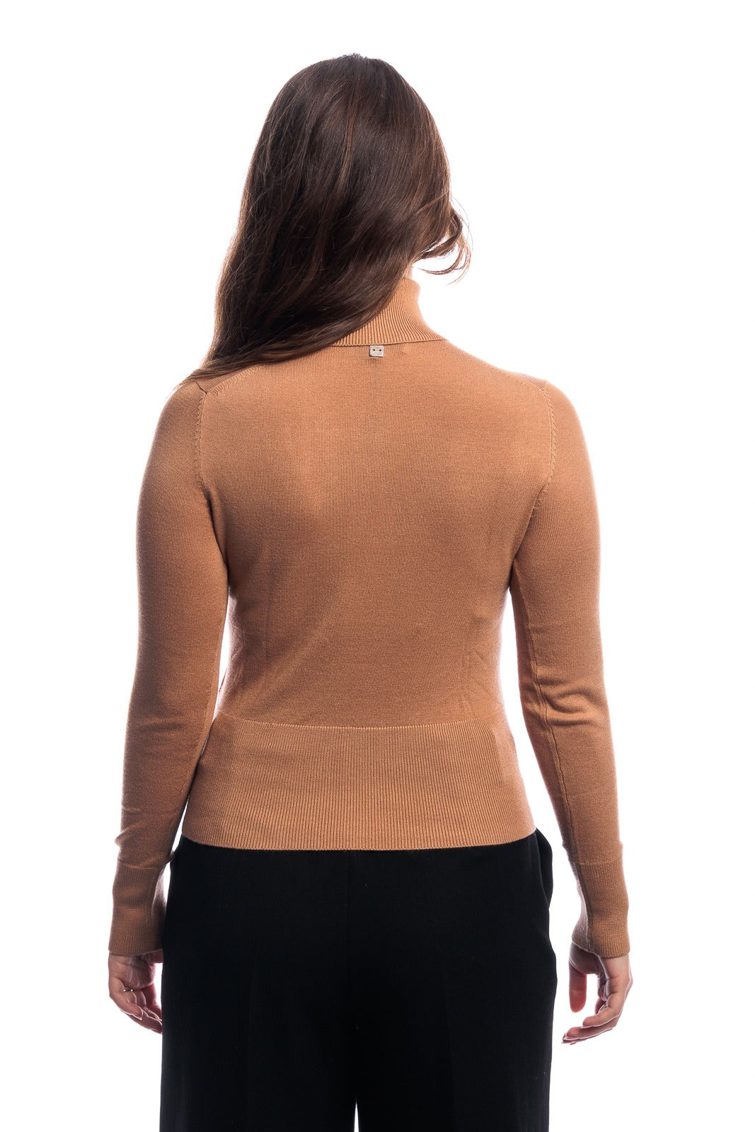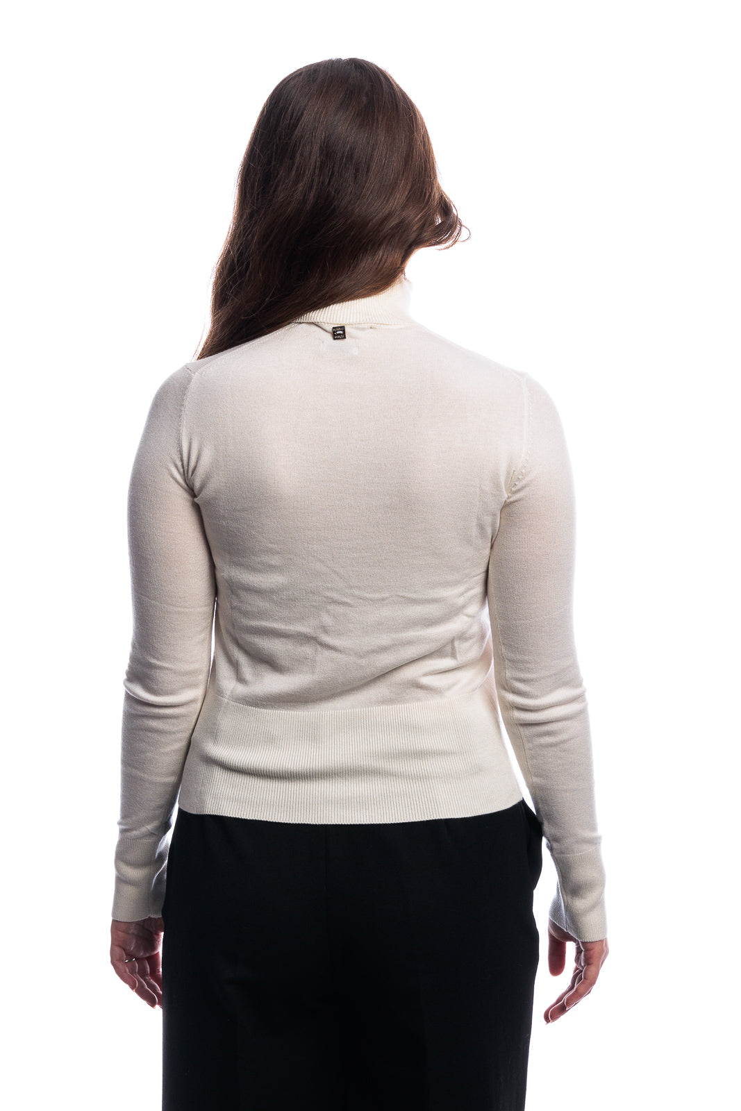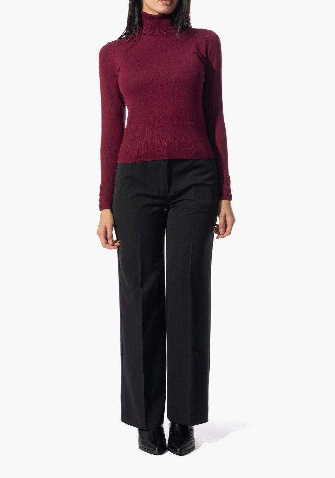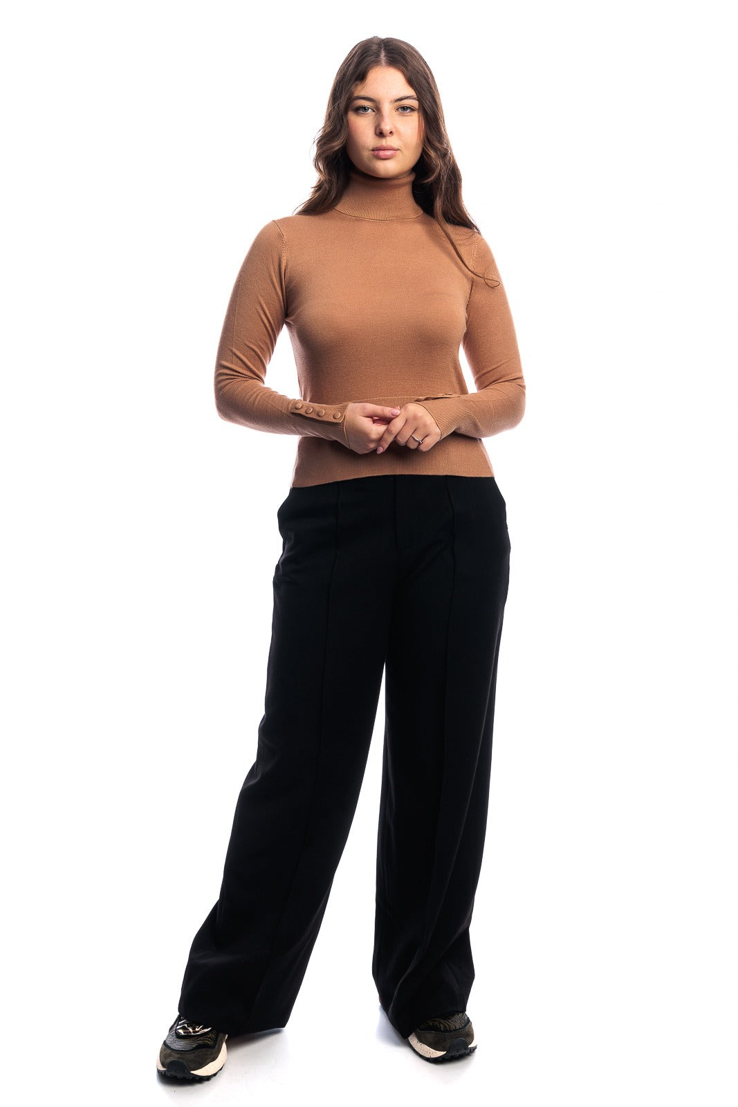 Maglia donna dolcevita in misto viscosa con bottoni ai polsi e ciondolo logato sul retro