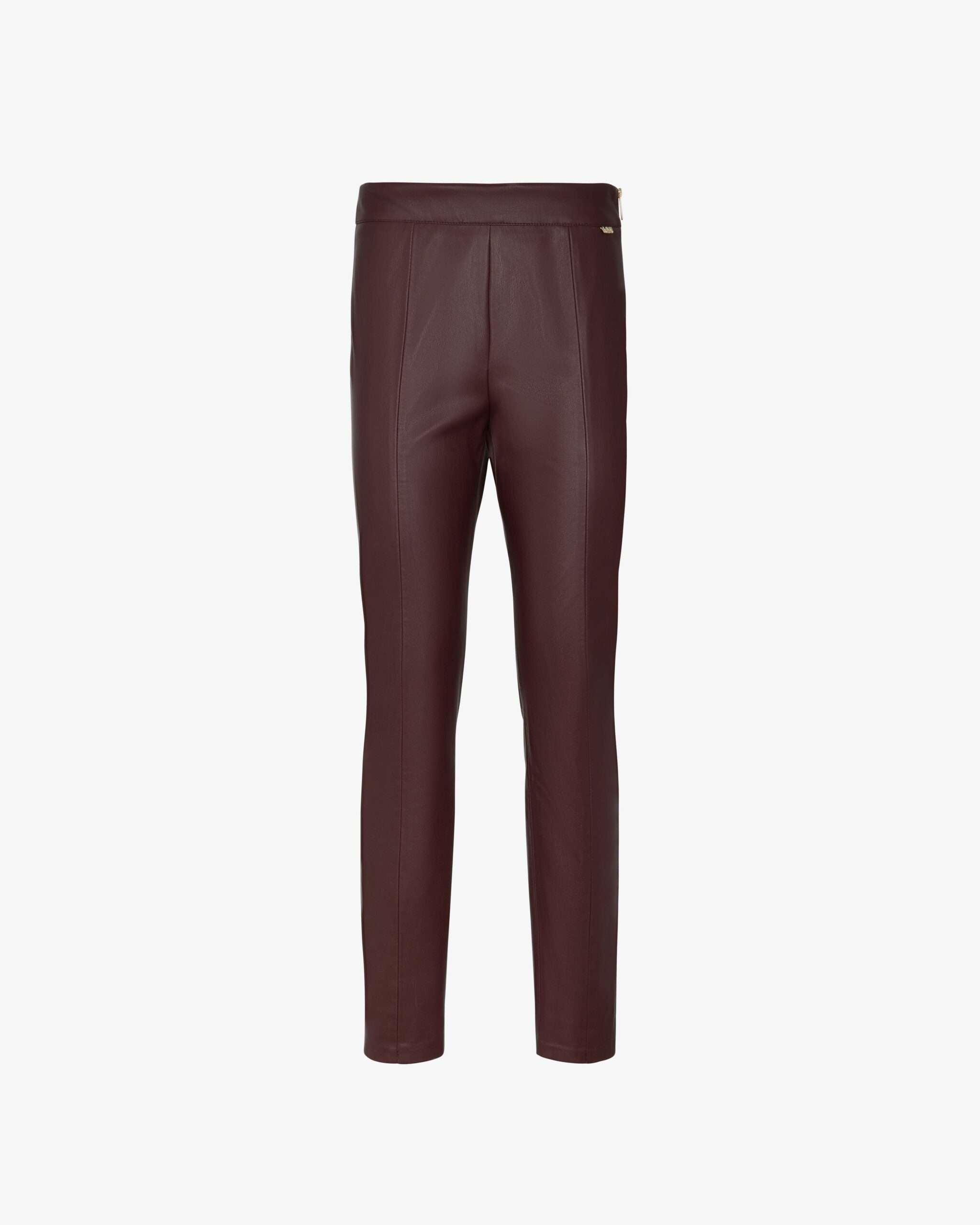 Pantalone donna modello chino vita alta chiusura con cerniera esterna laterale con applicazione del marchio in strass