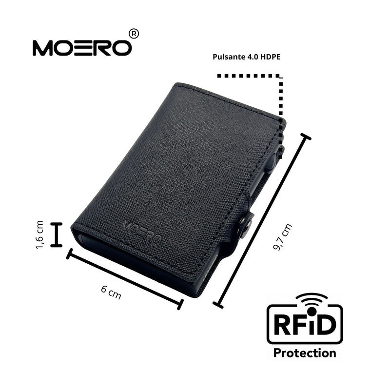 contiene fino a 12 carte, 5/6 nel portacarte di alluminio e altre 6 divise nelle due tasche inter