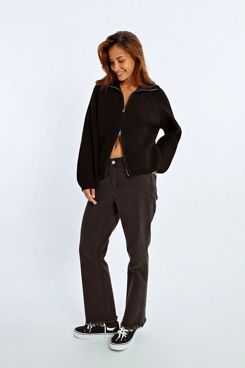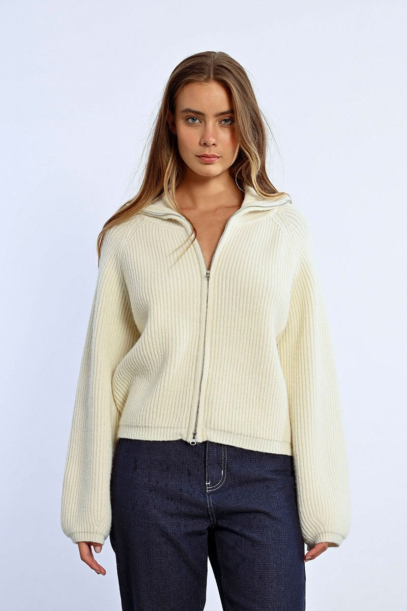 Cardigan donna a costine a maniche lunghe leggermente a sbuffo