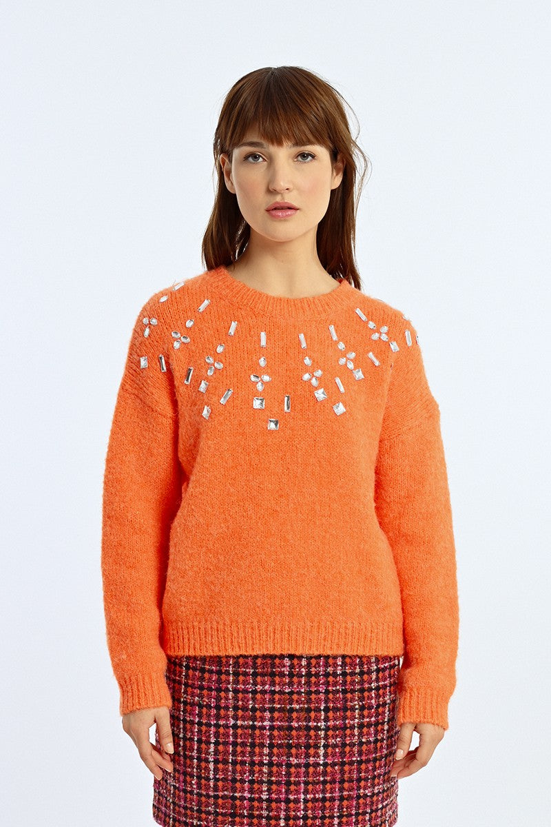 Molly Bracken Maglione Lavorato a Maglia con Strass Arancione