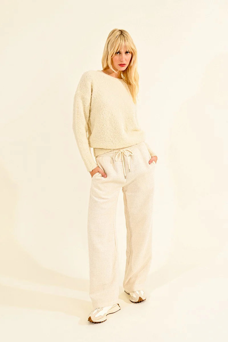 Molly Bracken PAantalone in Velluto Effetto Tweed Bianco
