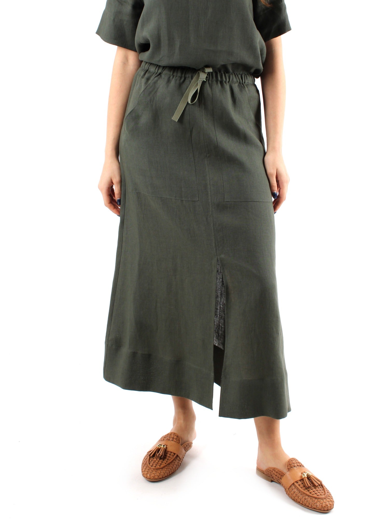 Niu Gonna Lunga in Puro Lino Verde