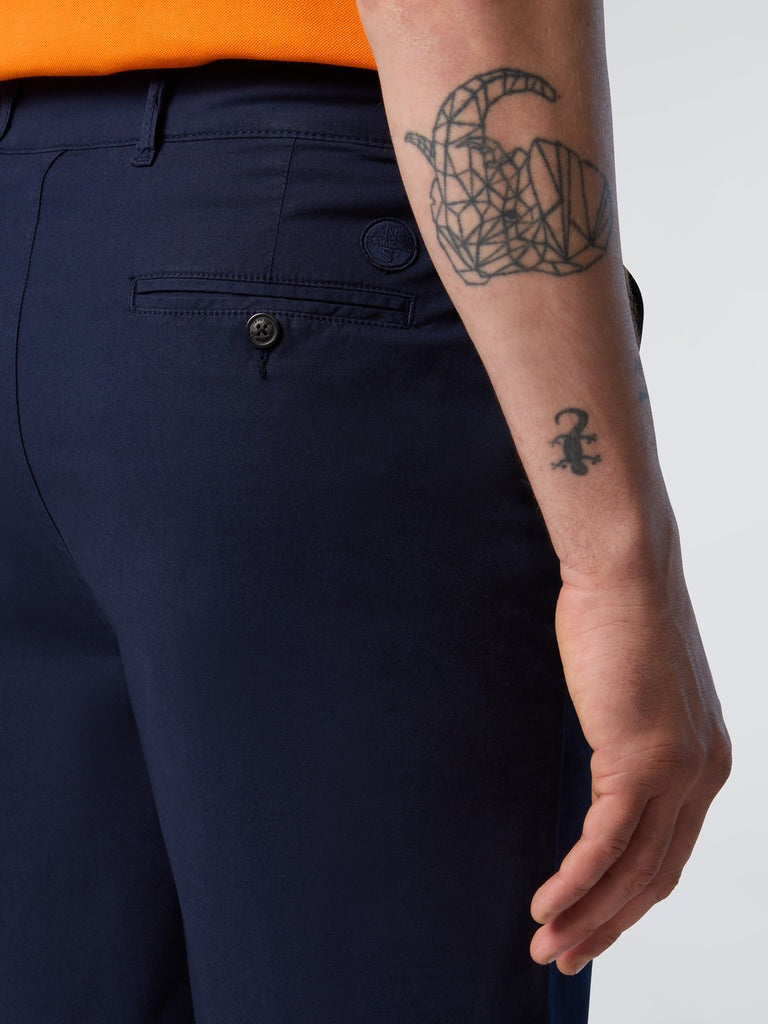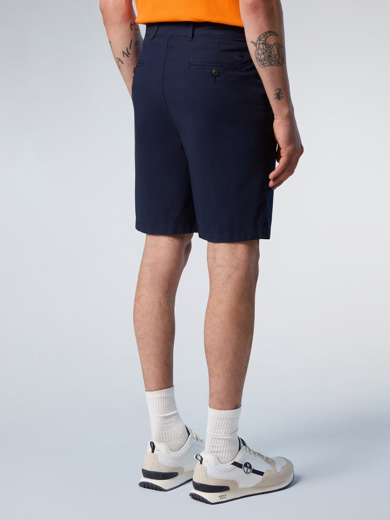Short uomo chino Freedom sono un simbolo dello stile smart casual da abbinare alla camicia o alla t-shirt in base alle occasioni. Il modello combina stile e attenzione al pianeta perché è realizzato in popeline stretch di cotone organico che riduce le emissioni e il consumo d'acqua. Impreziosito con il logo North Sails tono su tono sul retro.