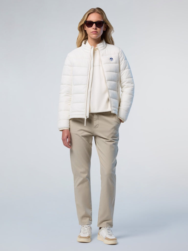 Pantalone donna Ispirazione sartoriale e comfort quotidiano si incontrano in questi pantaloni chino da donna. Il modello dalla linea slim è realizzato in gabardina stretch di cotone organico, in linea con il nostro impegno positivo per il pianeta. Rifiniti con tasche dal taglio elegante e logo ricamato sul retro.