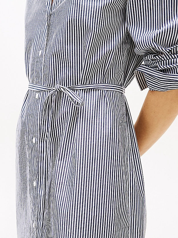 Tommy Hilfiger Abito midi in popeline a righe Bianco Blu