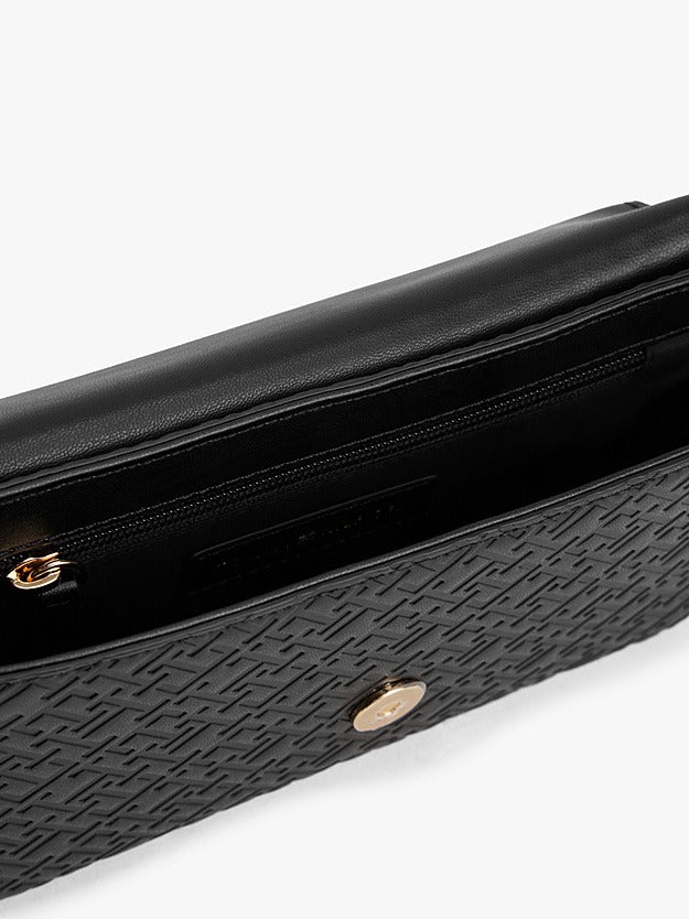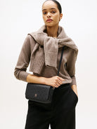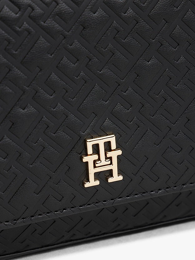 Borsa donna a tracolla, perfetta per ogni giorno, si distingue per l'iconico motivo con monogrammi TH impressi e i dettagli in metallo lucido.