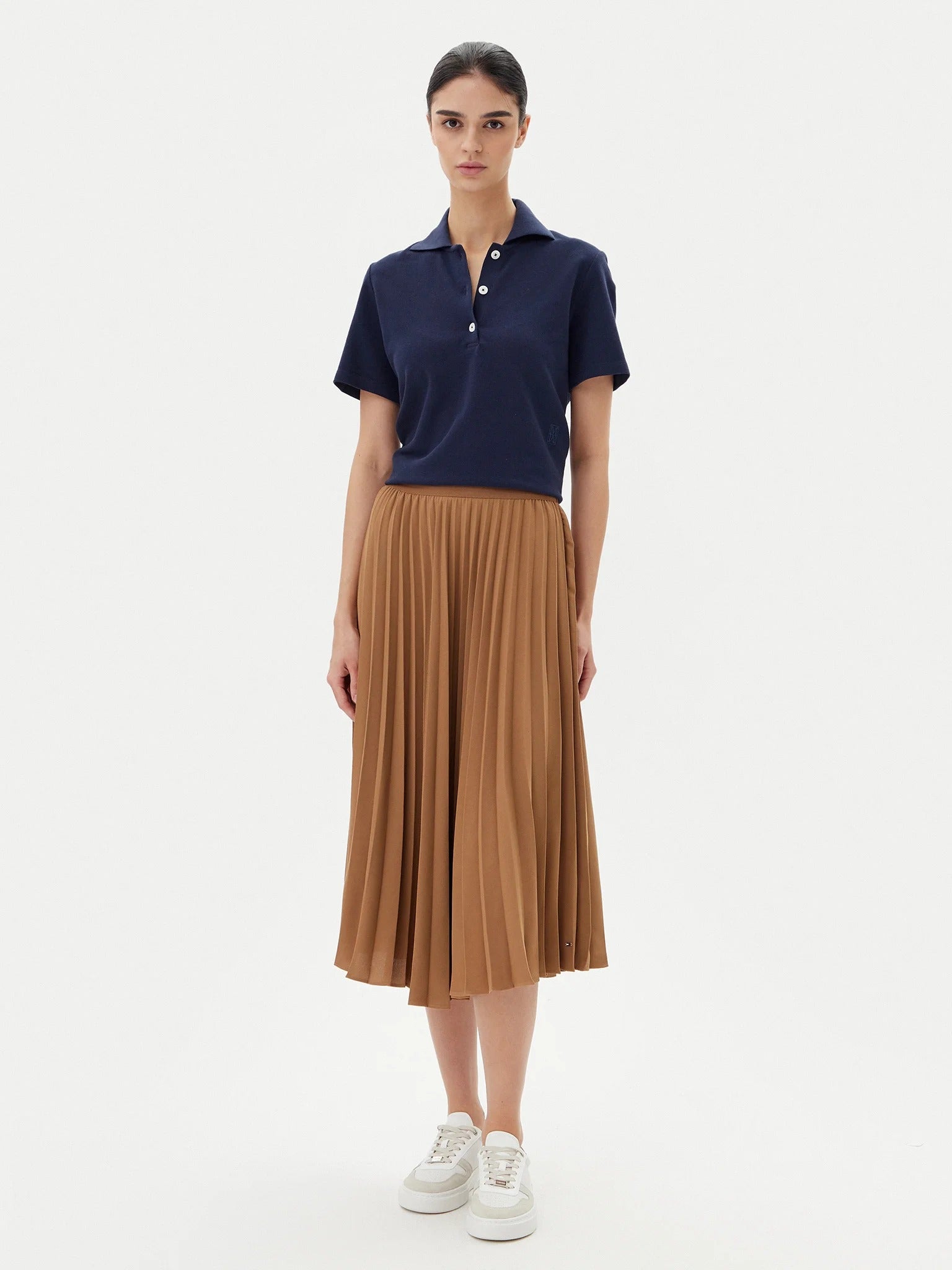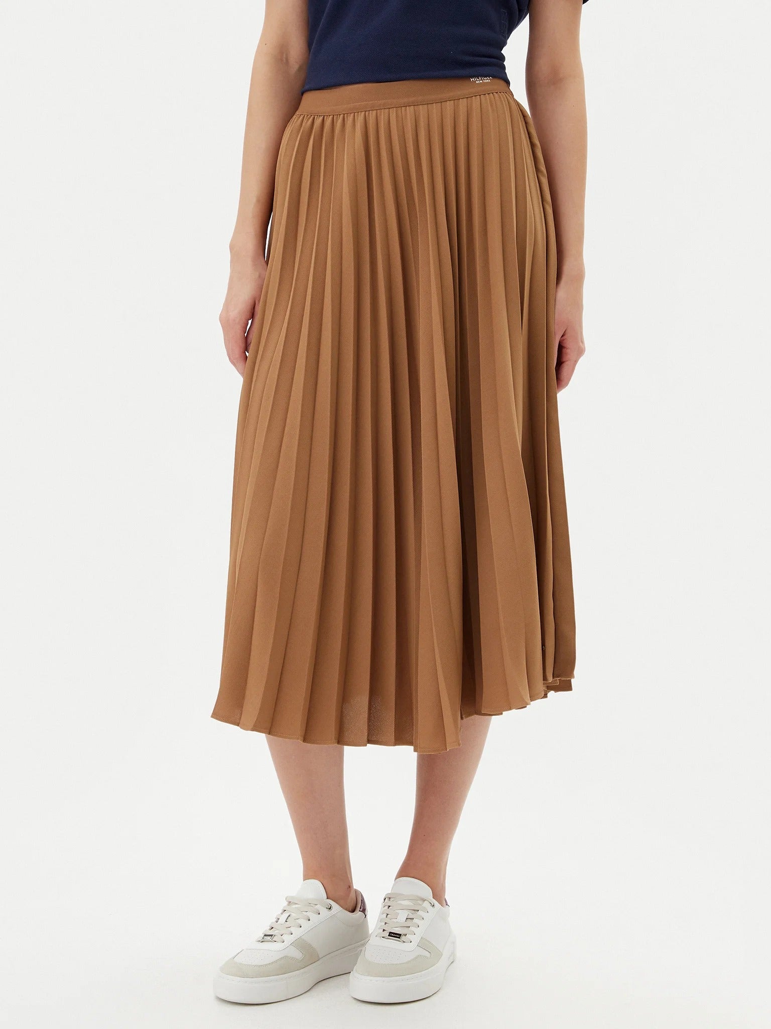 Tommy Hilfiger Gonna Midì Plissettata con Logo in Vita