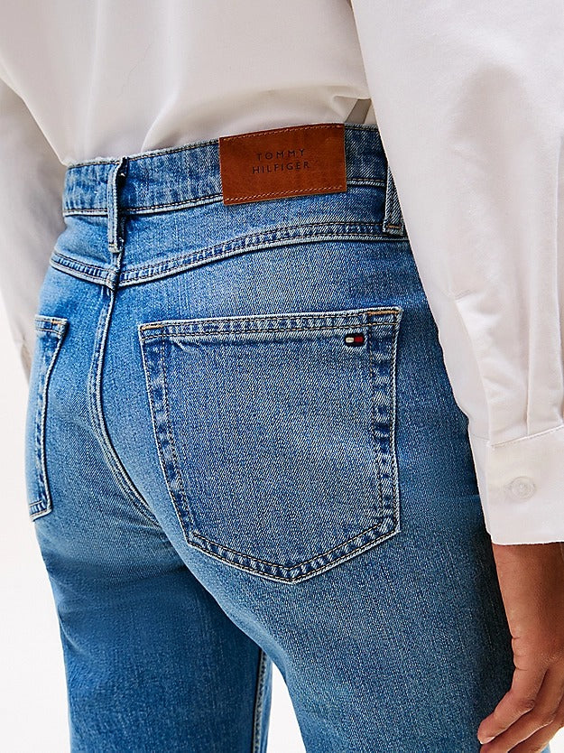I jeans donna dal classico taglio dritto, con vita media e scoloriture all over, sono un classico sempre attuale per i look casual. Caratteristiche principali Denim di cotone stretch Scoloriture sul davanti e sul retro Chiusura con zip e bottone Modello cinque tasche Branding Tommy Hilfiger Bandierina Tommy Hilfiger ricamata sulla tasca posteriore Composizione: 99% cotone, 1% elastan Codice Articolo WW0WW443451 https://nz.tommy.com/size_guide_womens