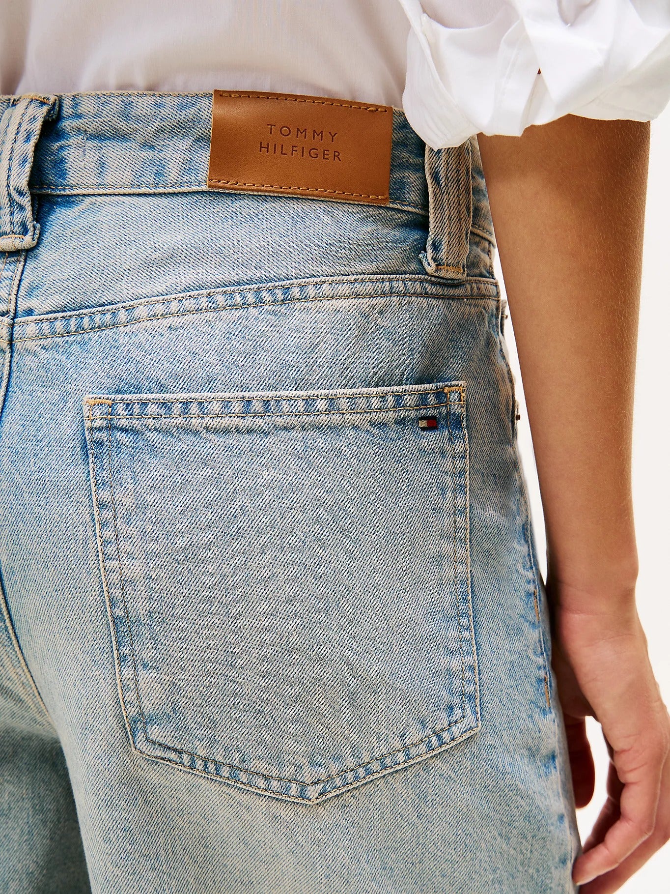 Jeans donna Baffature sui fianchi Chiusura con zip e bottone Modello cinque tasche Branding Tommy Hilfiger Bandierina Tommy Hilfiger ricamata sulla tasca posteriore Modello e vestibilità Relaxed fit Taglio barrel Vita media Composizione: 100% cotone Codice Articolo: WW0WW46770 https://nz.tommy.com/size_guide_womens