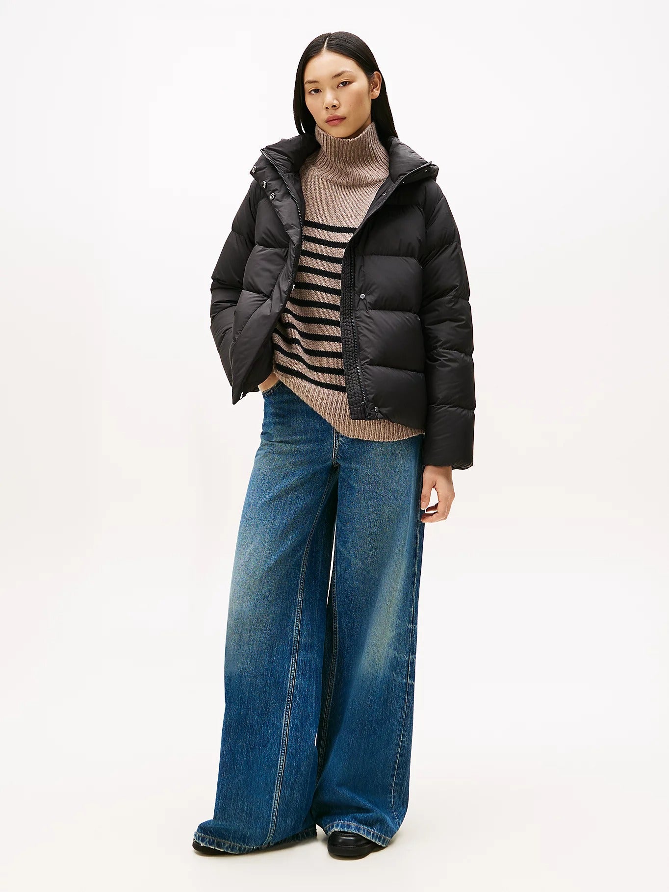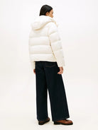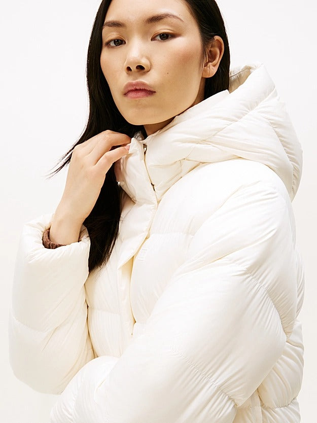 Piumino donna Quando le temperature si abbassano, riparati dal freddo grazie all'avvolgente piumino con cappuccio, completato dalla pratica finitura idrorepellente. Caratteristiche principali Imbottito in piuma Idrorepellente Cappuccio inamovibile Chiusura con zip nascosta e bottoni a pressione Bandierina Tommy Hilfiger tono su tono ricamata sul petto. Composizione: 100% poliestere Imbottitura in piuma Peso dell'imbottitura: 185 g Fodera in nylon Codice Articolo: WW0WW45739 https://nz.tommy.com/size_guide_womens