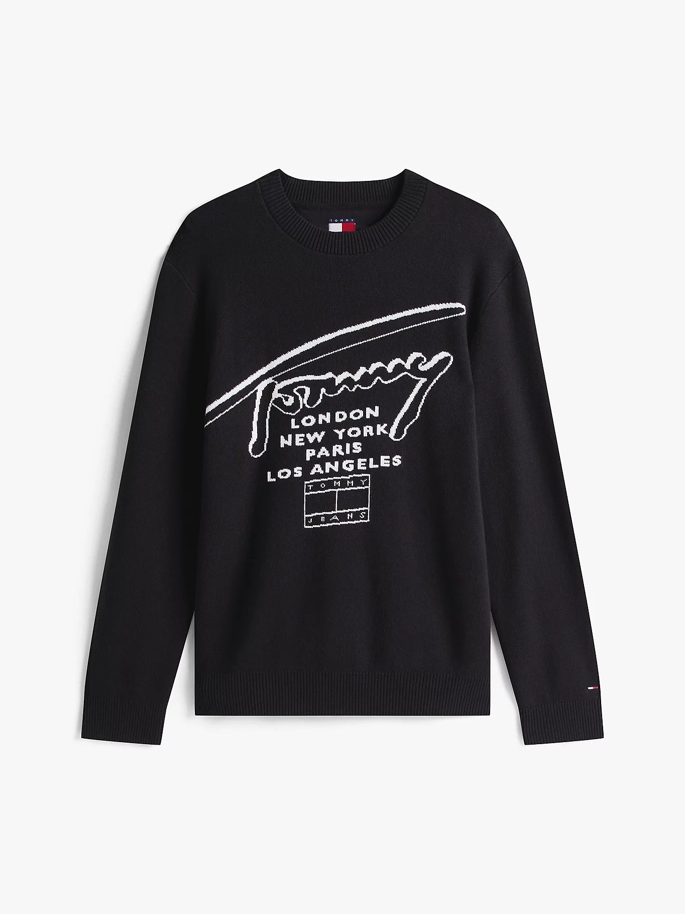Tommy Hilfiger Pullover con Logo a Intarsio Nero