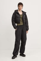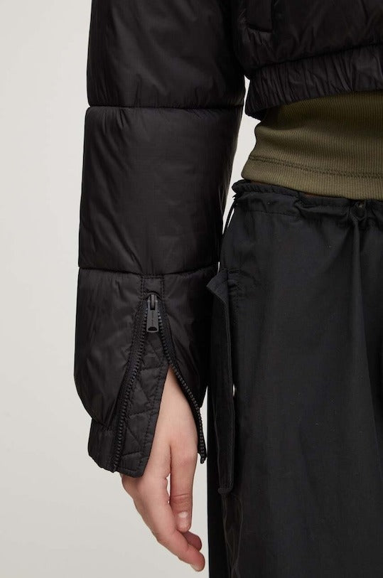 Piumino donna realizzato in materiale a tinta unita isolato. Il cappuccio integrato aumenta la protezione dal freddo e dal vento.