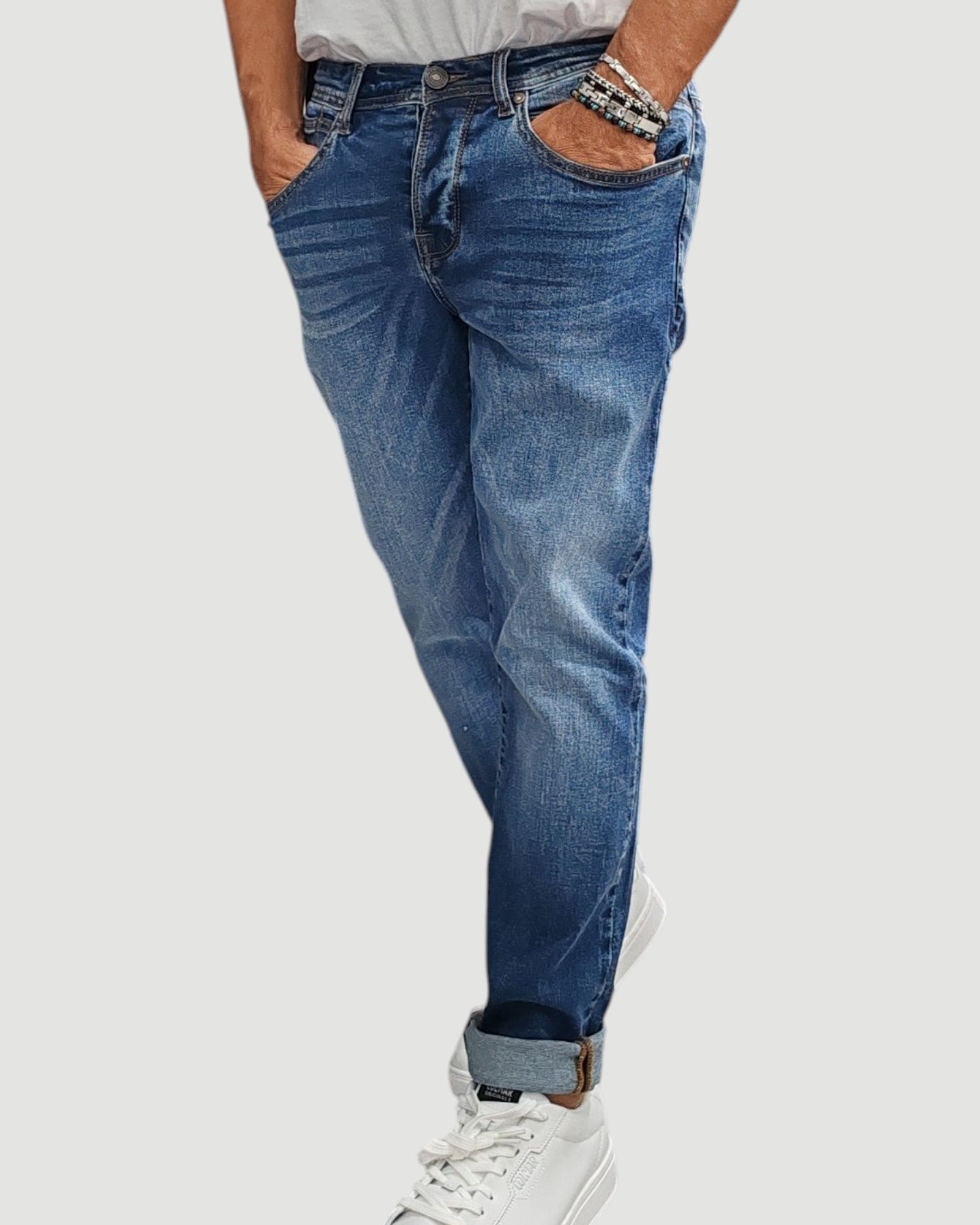 Jeans uomo slim fit chiusura con bottoni modello cinque tasche