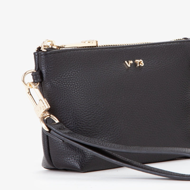Pochette piccola donna con logo in metallo sul davanti chiusura con cerniera