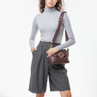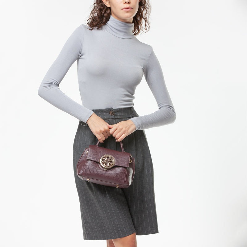 Mini borsa donna in grana sfoderata con chiusura fiorone V°73. Tracolla personalizzata in nastro.