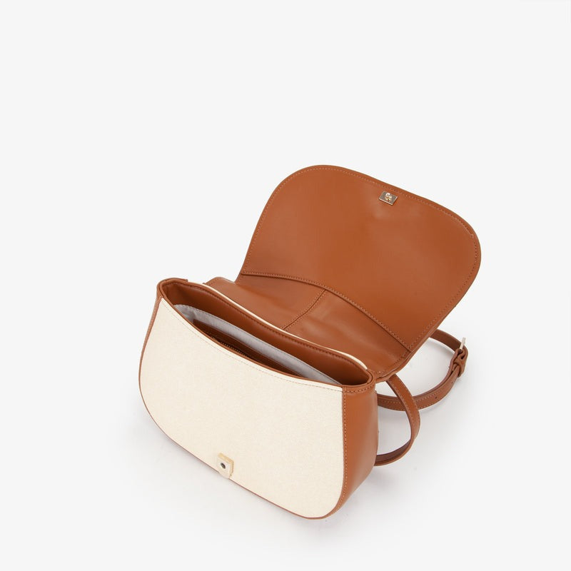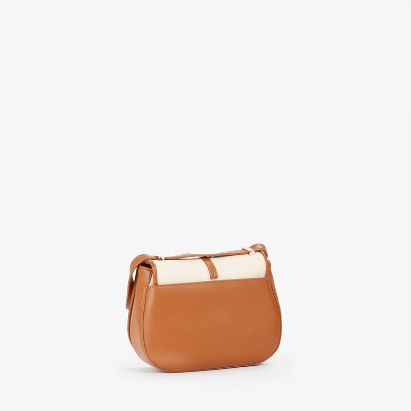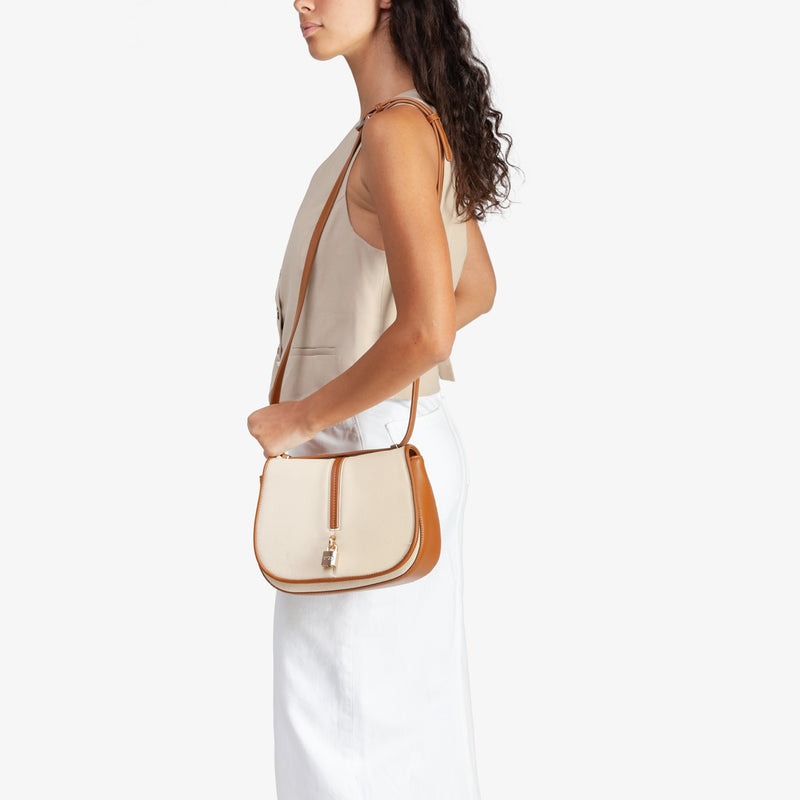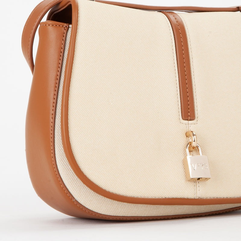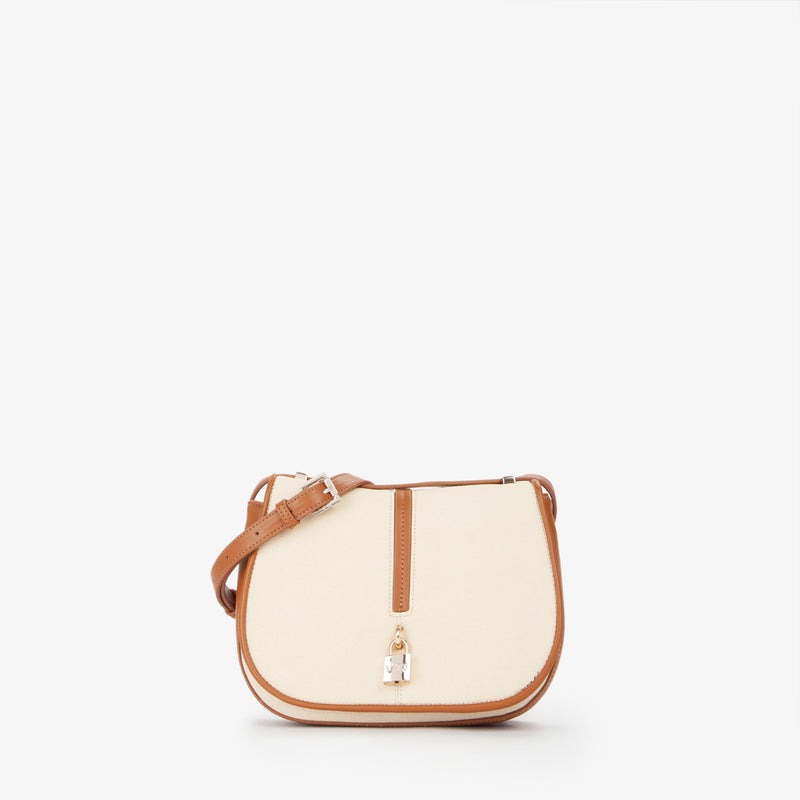 Borsa donna Crossbody in grana con lucchetto personalizzato. Chiusura con bottone a scatto e tracolla scorrevole per una doppia portabilità con tasche interne multiple