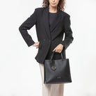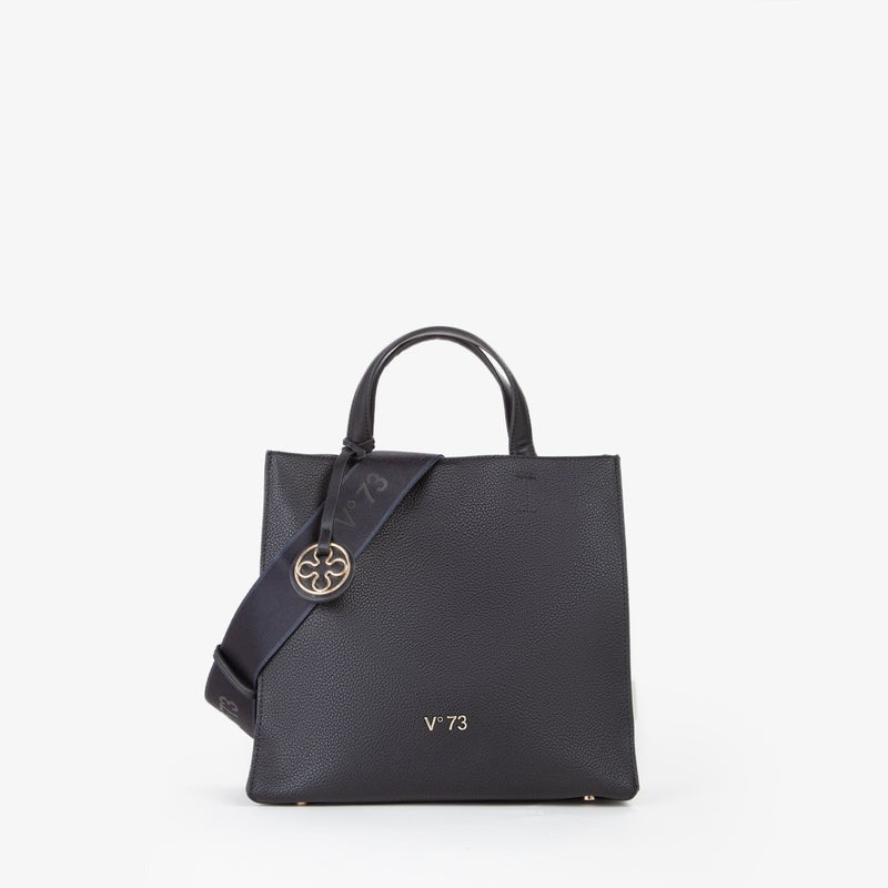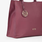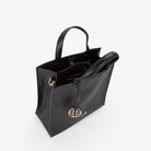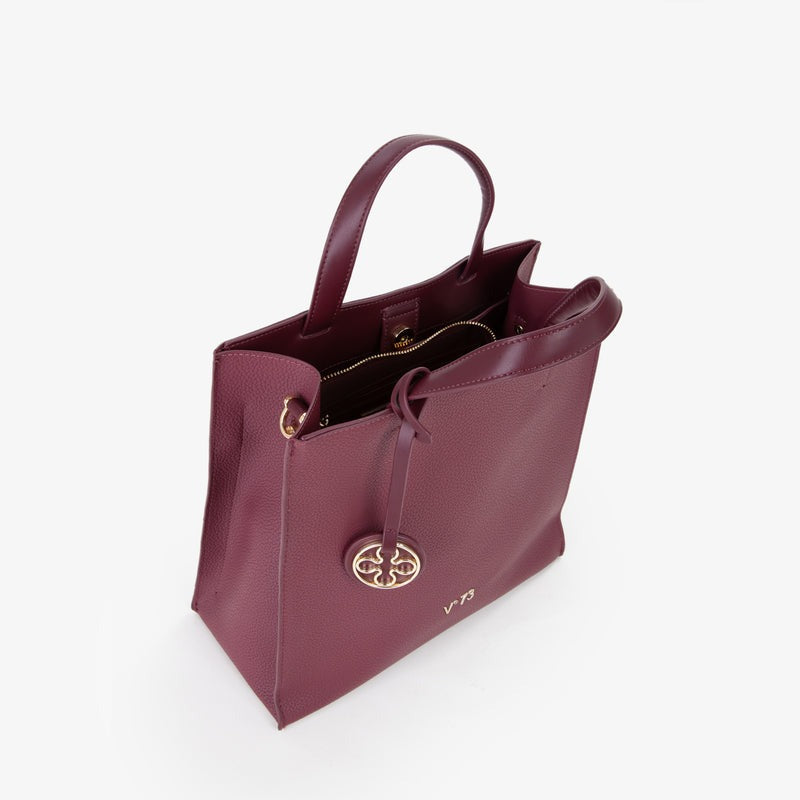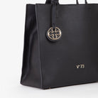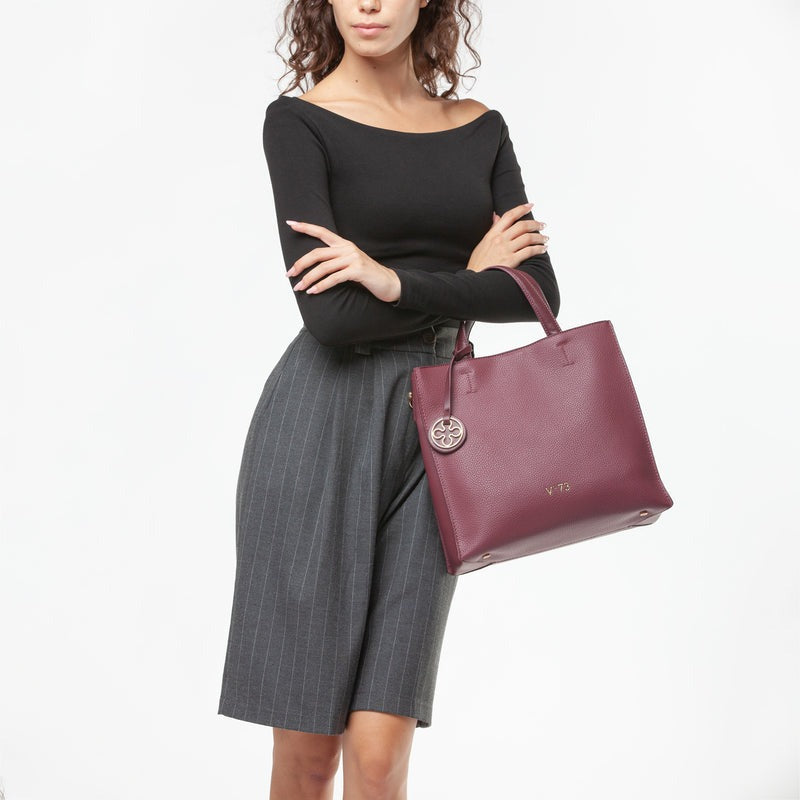 Borsa donna realizzata in morbida nappa con pendente personalizzato. Logo applicato su patch.
