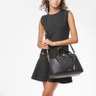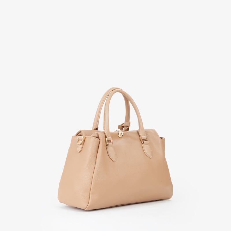 Borsa donna a mano con doppio manico e tracolla realizzata in morbida nappa tasca interna chiusura magnetica effetto serratura.