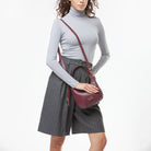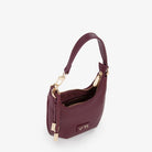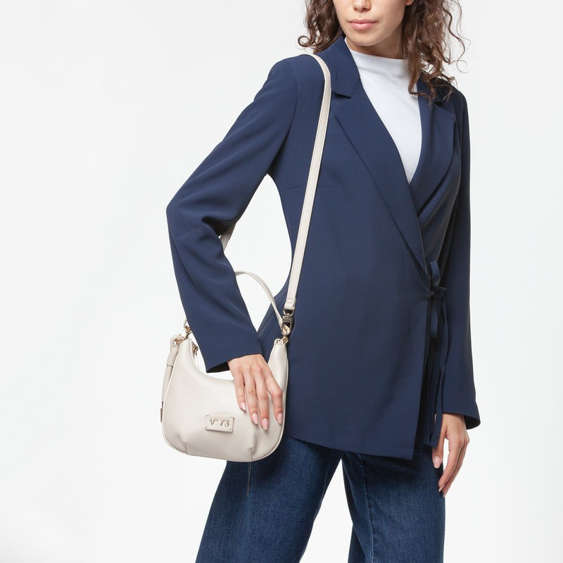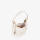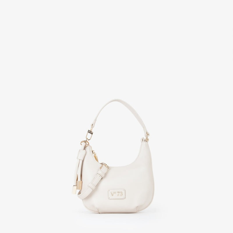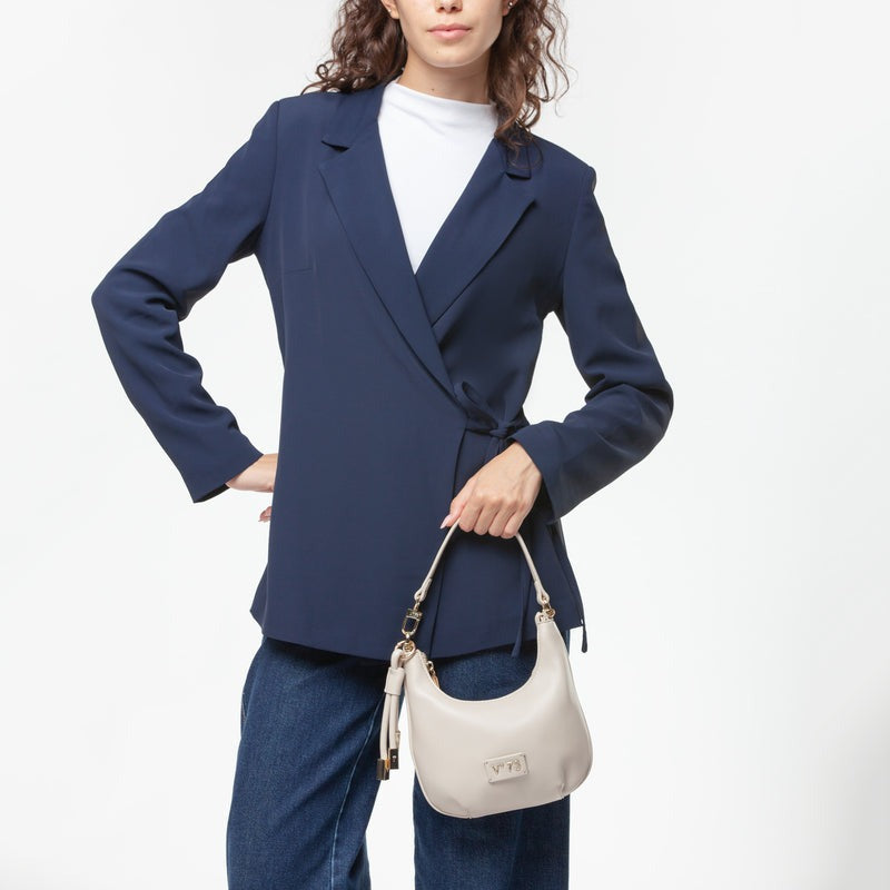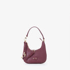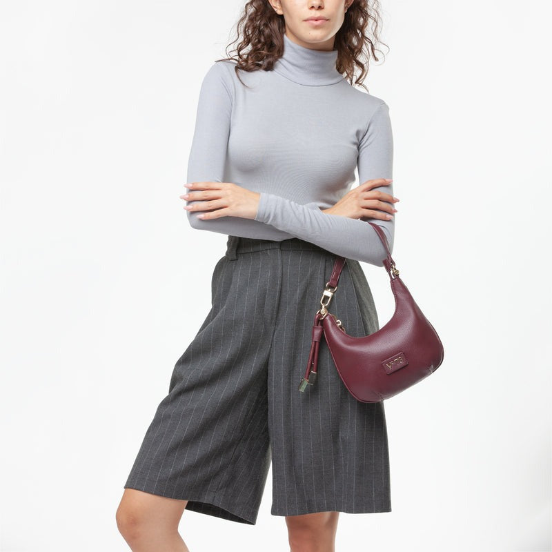 Borsa donna realizzata in morbida nappa con pendente personalizzato. Logo applicato su patch.