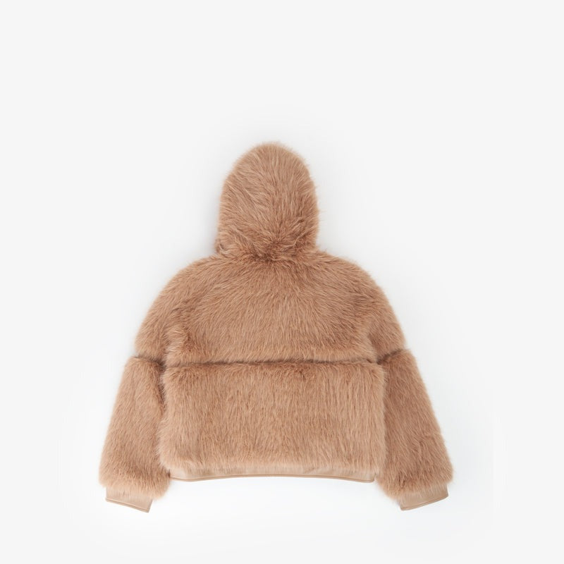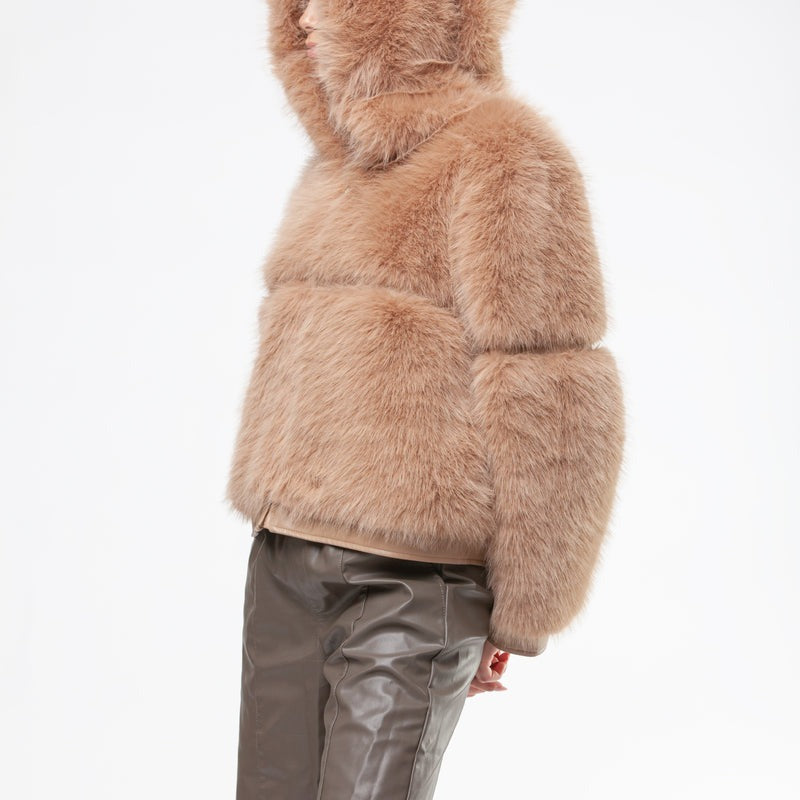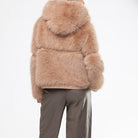 Giubbino donna con cappuccio in pelliccia e inserti in pelle chiusura con cerniera con maniche lunghe tasche laterali
