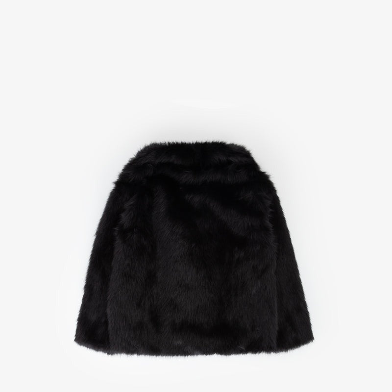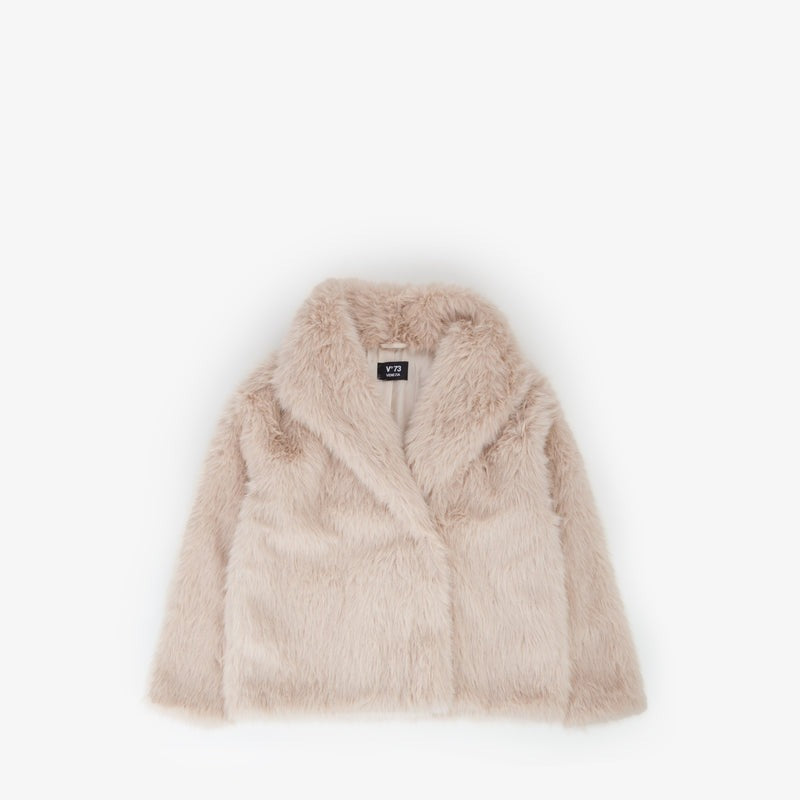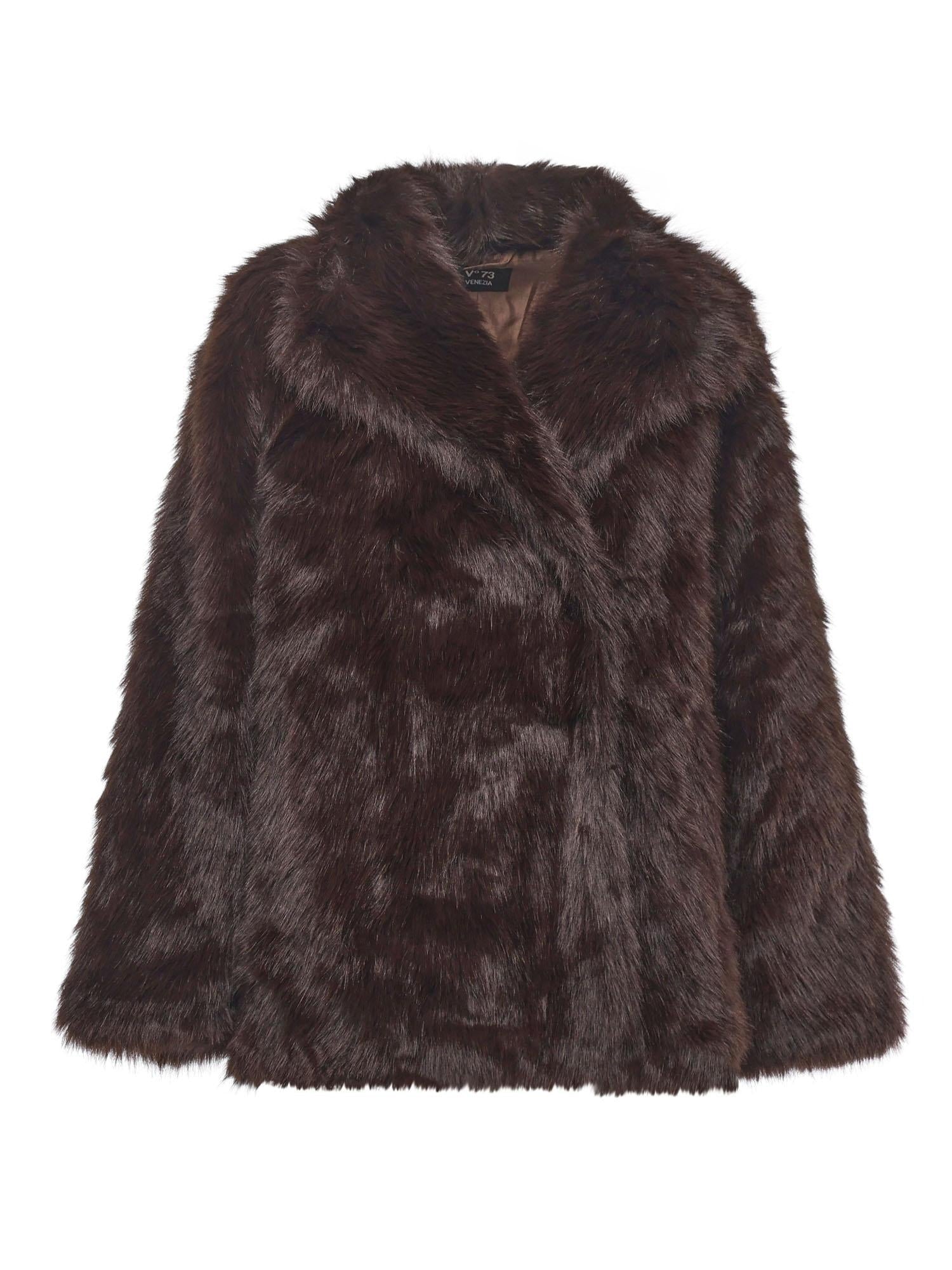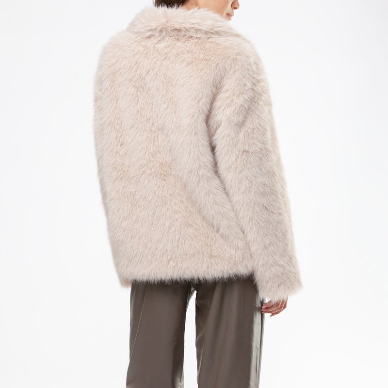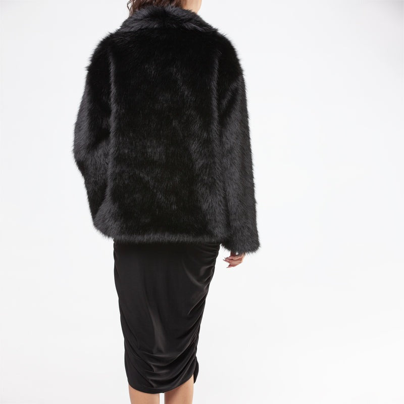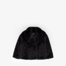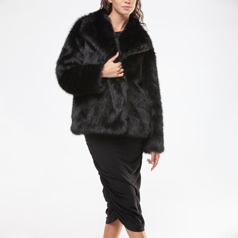 Giubbino donna in pelliccia con maniche lunghe collo scialle tasche laterali chiusura con ciappa