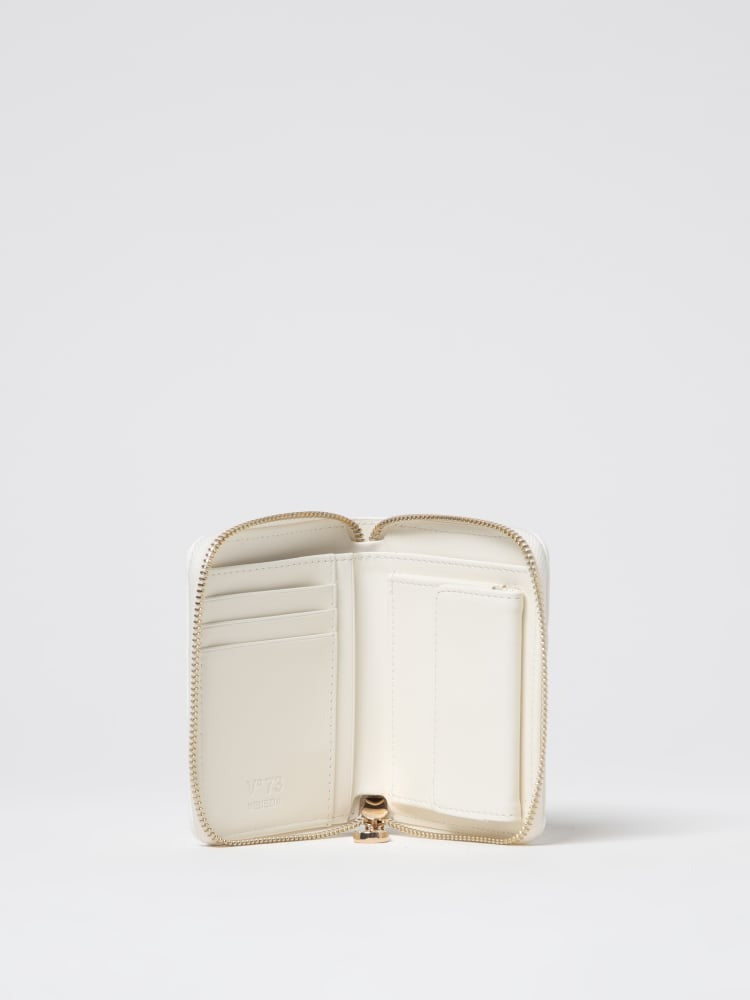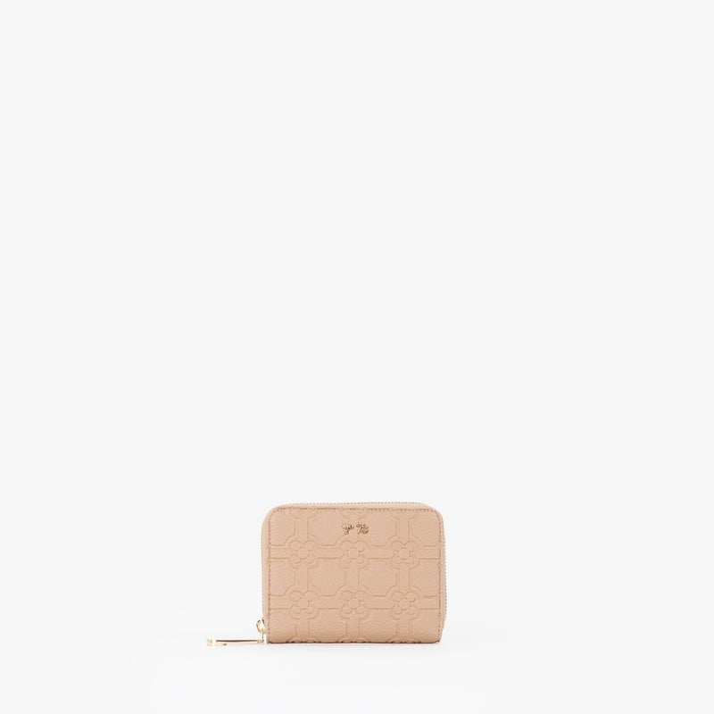 Portafoglio donna con all over marchiato a fuoco, logo in metallo con tre scomparti porta carte e taschino chiusura con cerniera