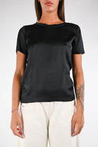 Vicolo-Blusa satin elasticizzata mezza manica T-shirt girocollo a maniche corte con in tessuto effetto satin. Vicolo offre un’atmosfera leggera e delicata, vibrante di texture, colori, luci e ombreart.