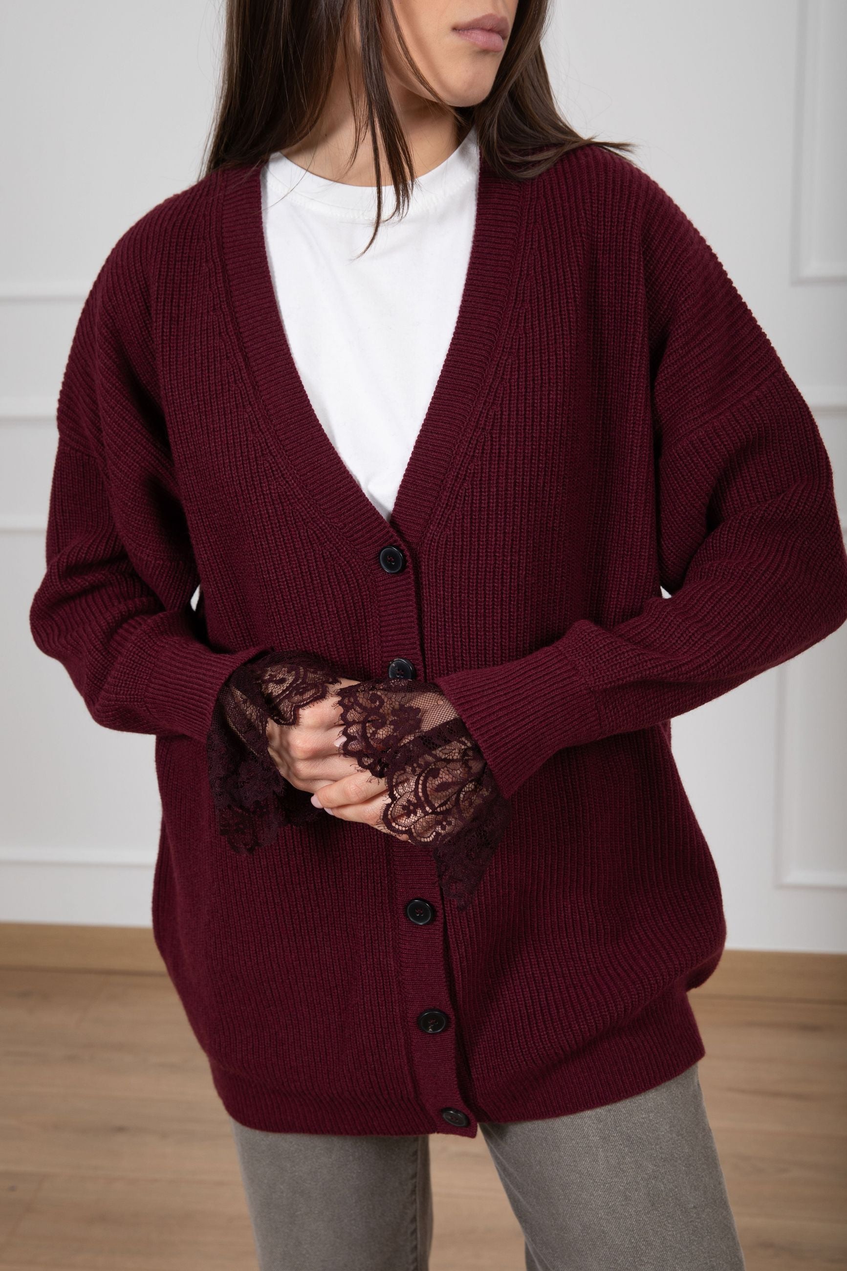 Vicolo Cardigan a Coste con Manica di Pizzo Bordeaux