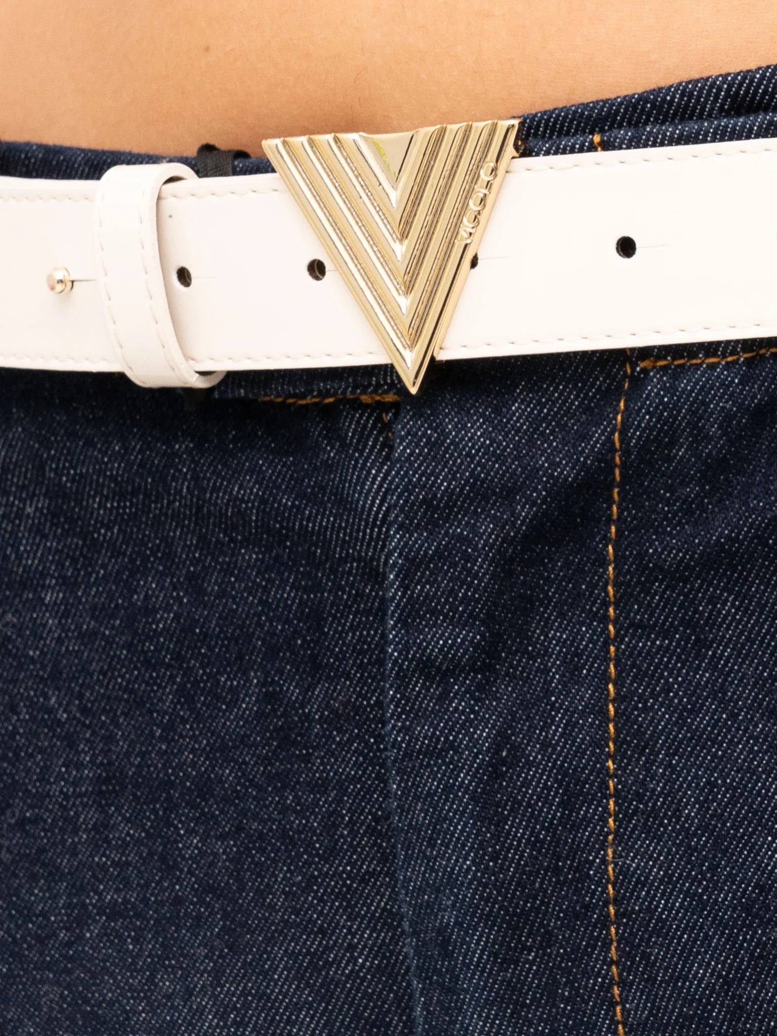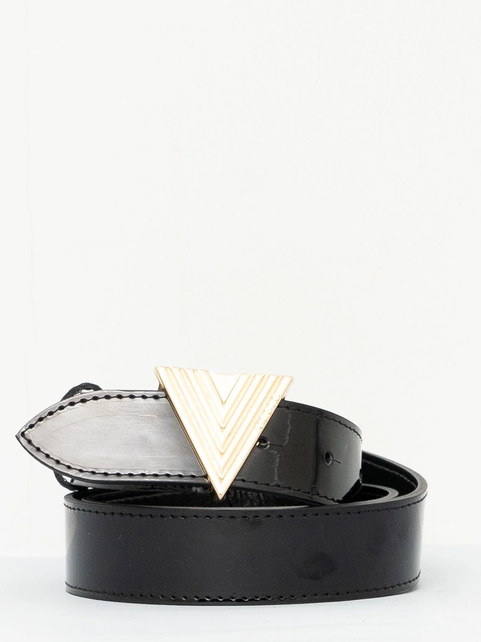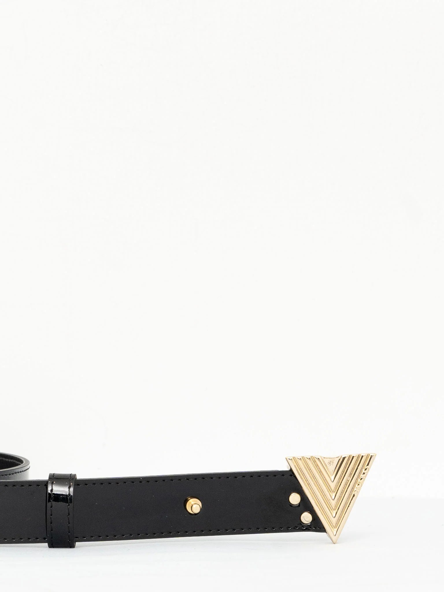 Cintura donna in pelle lucida fibbia logo in metallo dorato