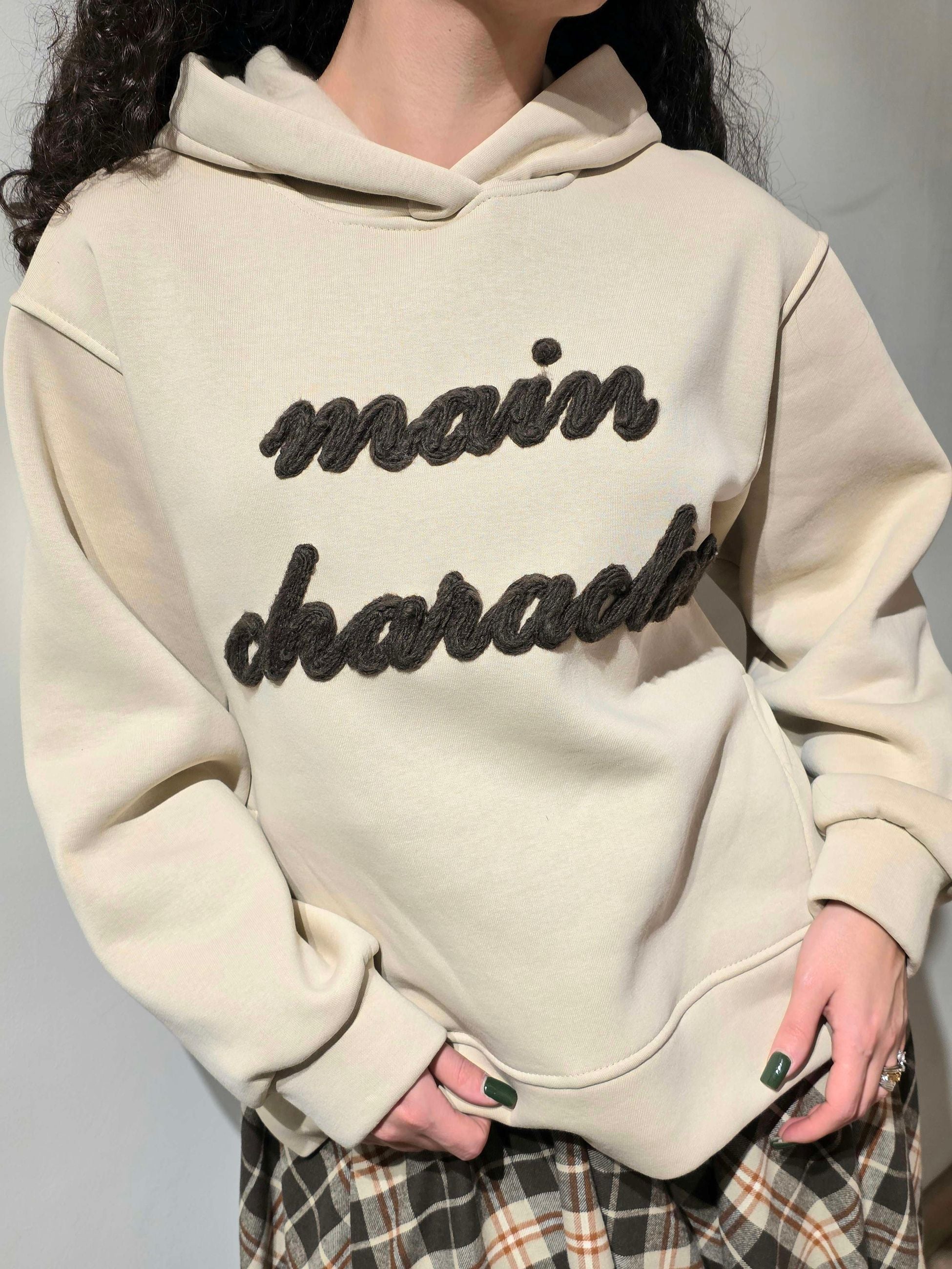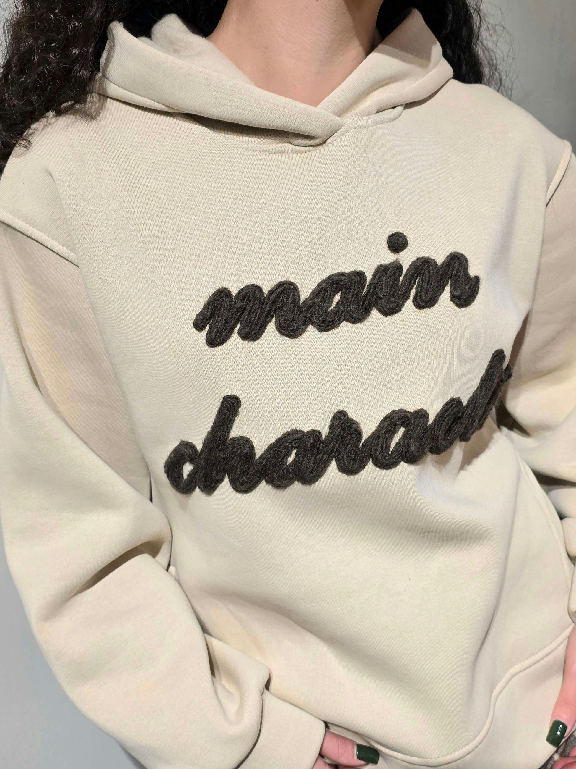 Felpa donna con maniche lunghe cappuccio spacchi laterali con scritta in rilievo in lana