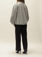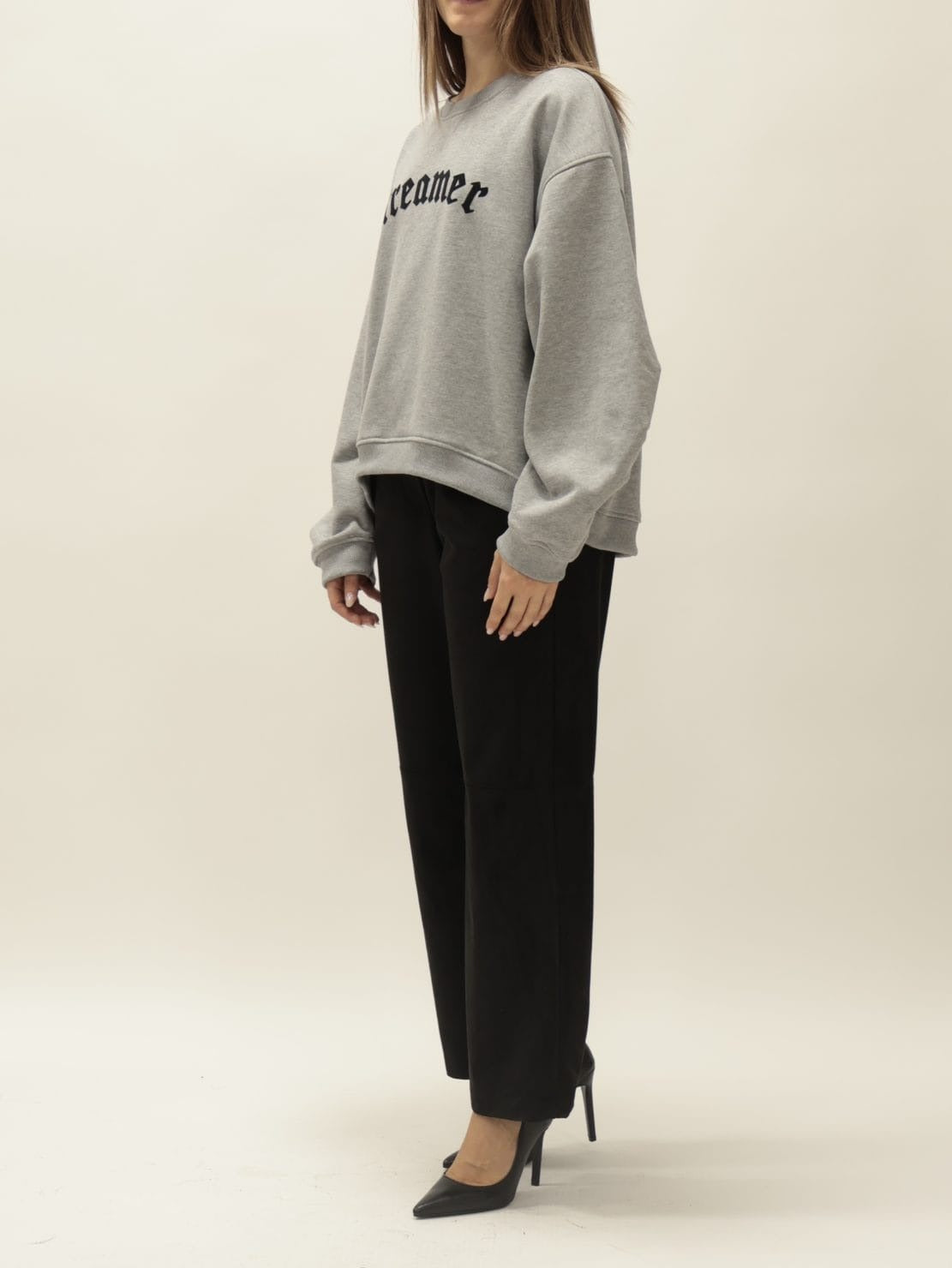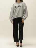 Felpa donna oversize fit oversize, manica lunga con arriccio sul retro. Dettaglio di stampa Dreamer a contrasto. Finiture a costine.