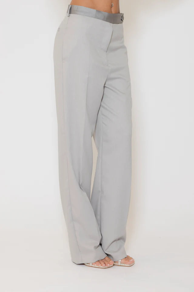Vicolo Pantalone con Piega Stirata e Inserti in Raso Grigio