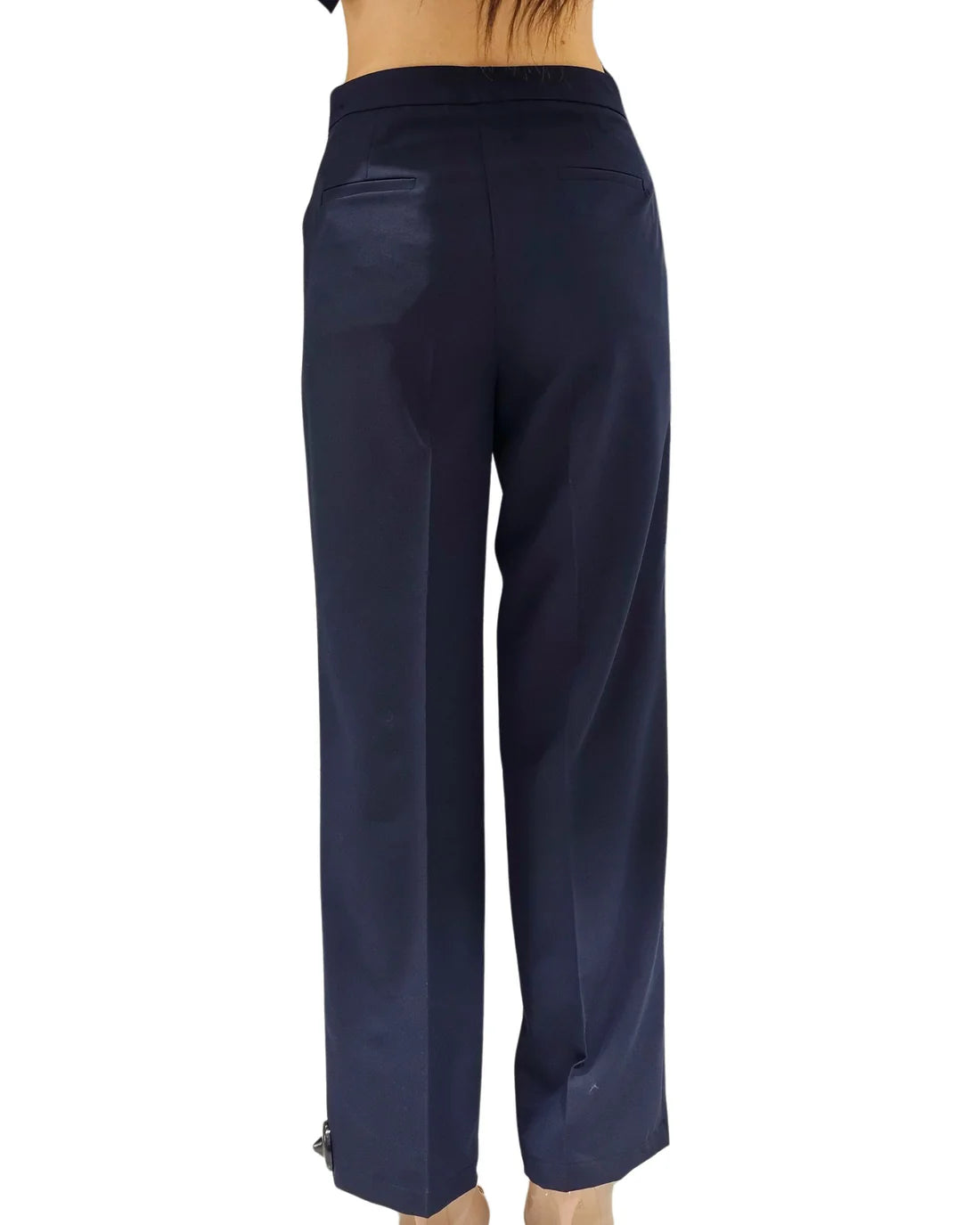 Pantalone della nuova collezione spring summer 2025 del brand Vicolo. Pantalone ampio a vita alta. Tasche laterali e finta tasca a filetto sulla parte posteriore. Gamba larga. Chiusura frontale con zip e bottone.