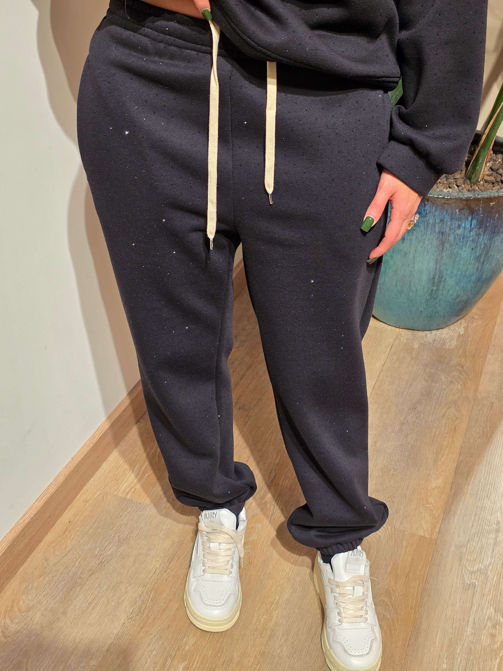 Vicolo Pntalone in tessuto Felpato con piccoli strass Nero