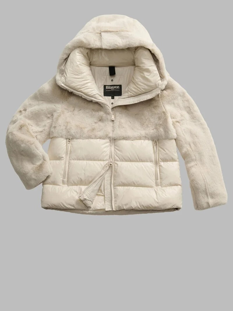 Blauer USA Giacca in Nylon e Ecopelle di Pecora Organica